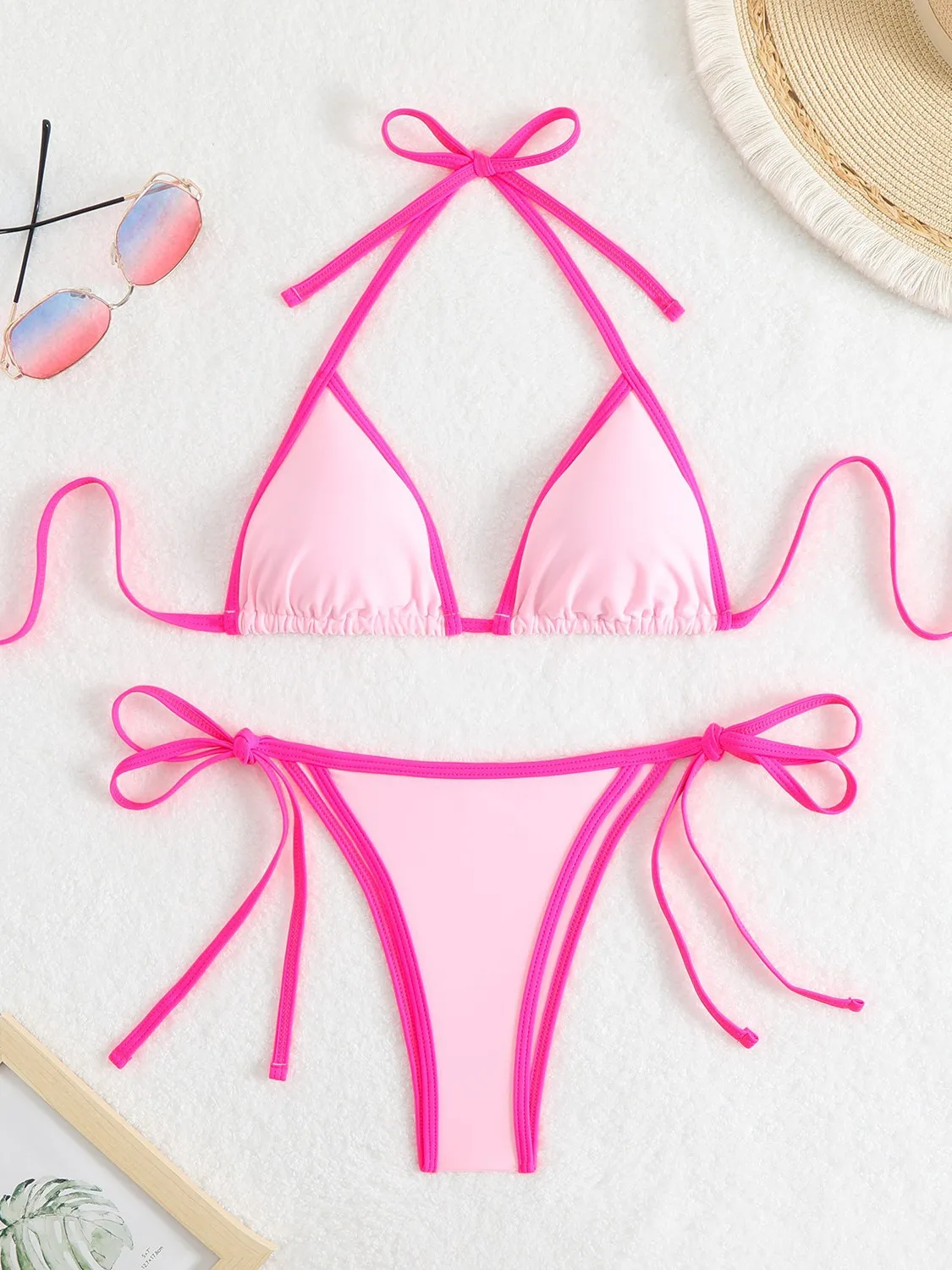 Women Sexy Solid Spandex/Nylon Breathable Bikini Set Triangle Swimsuit Two Piece Swimwear for Beach Vacation