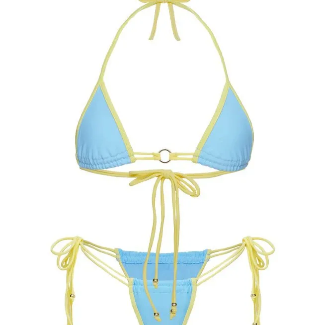 Halter Micro Bikini Set for Women Two Piece Tie Side Swimsuit with Crystal Decoration Eco-friendly Cheeky Bottom