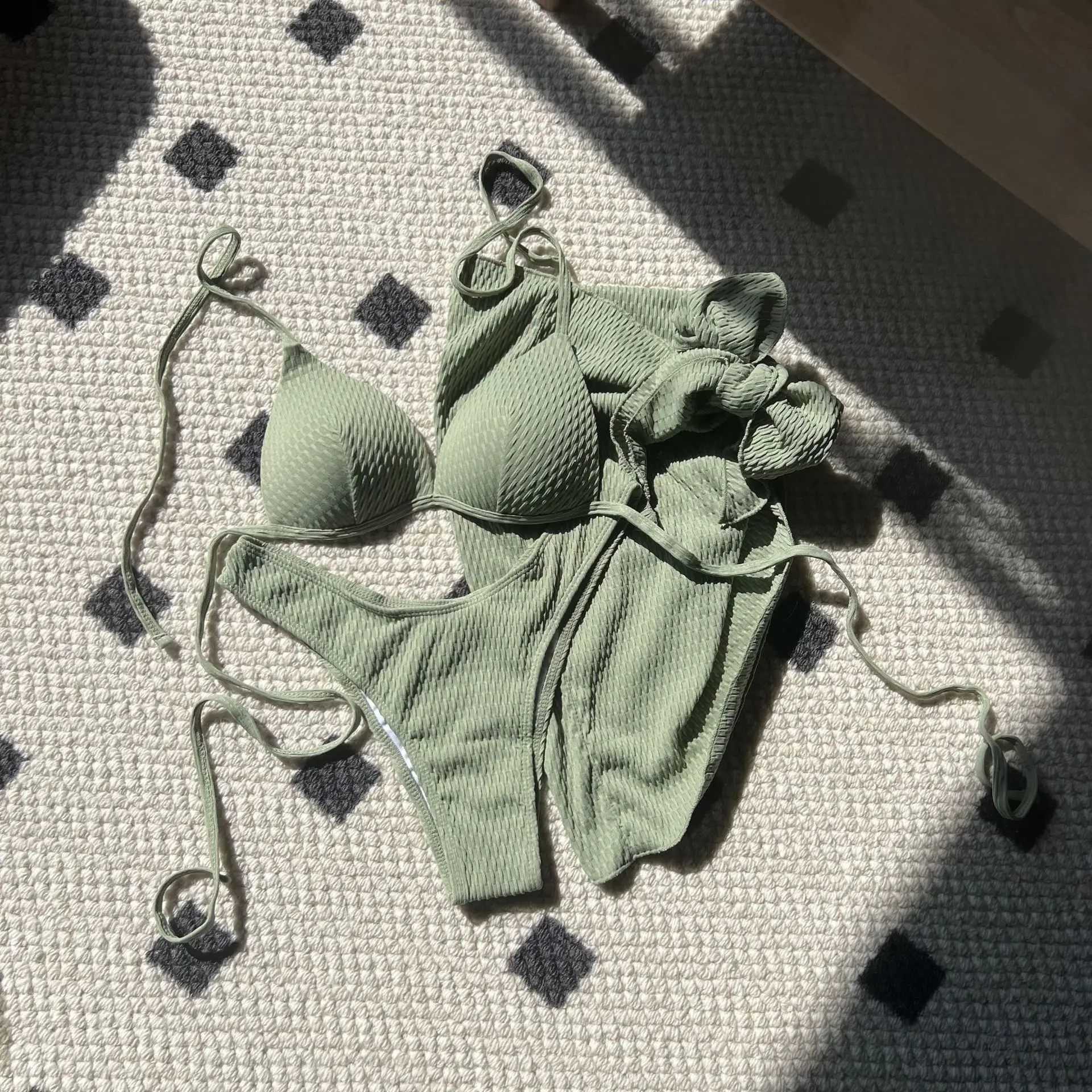MLY Ruffle Bikini Summer Two Piece Suit Sexy Swimwear Bandage Biquini Triangle Swimsuit Printed Bathsuit