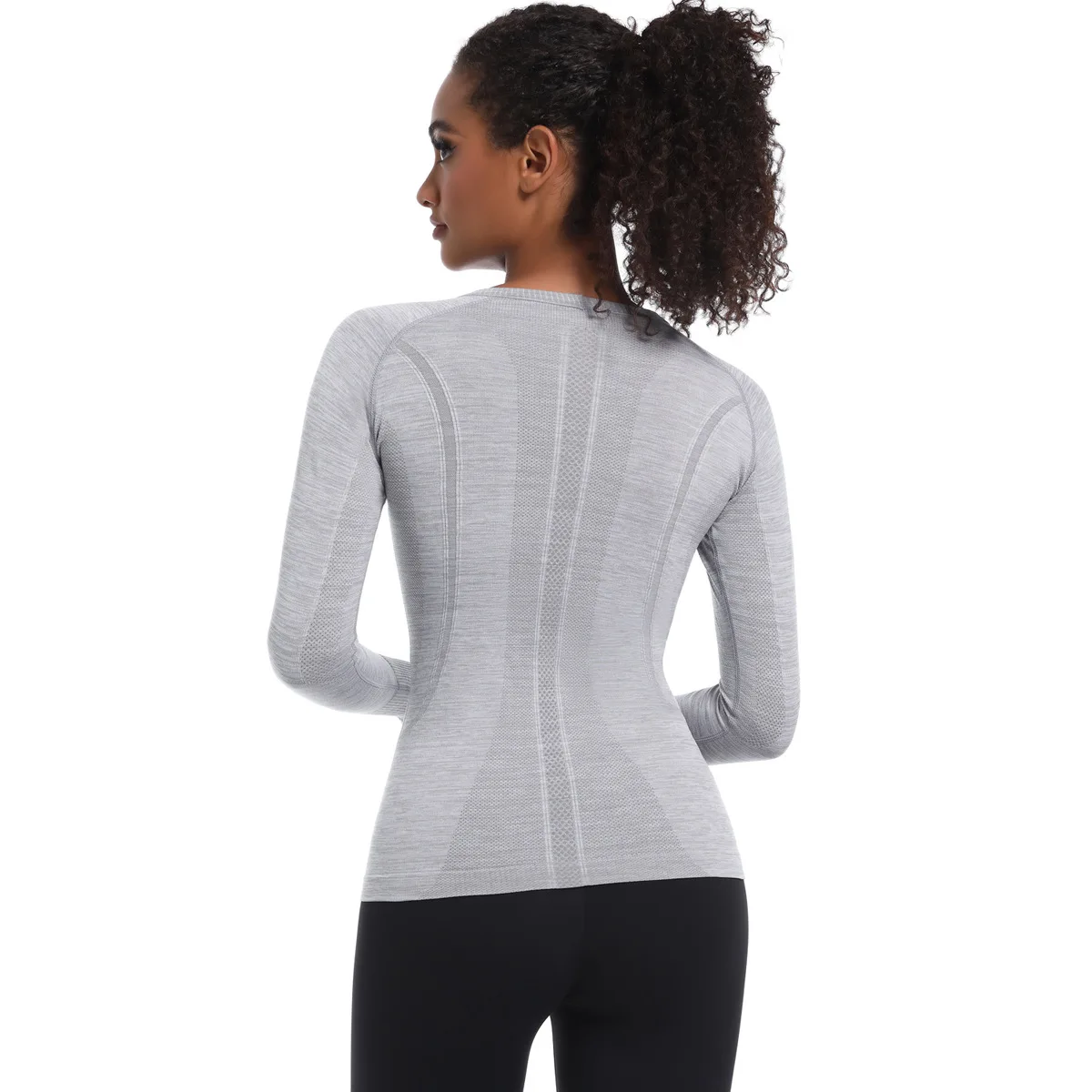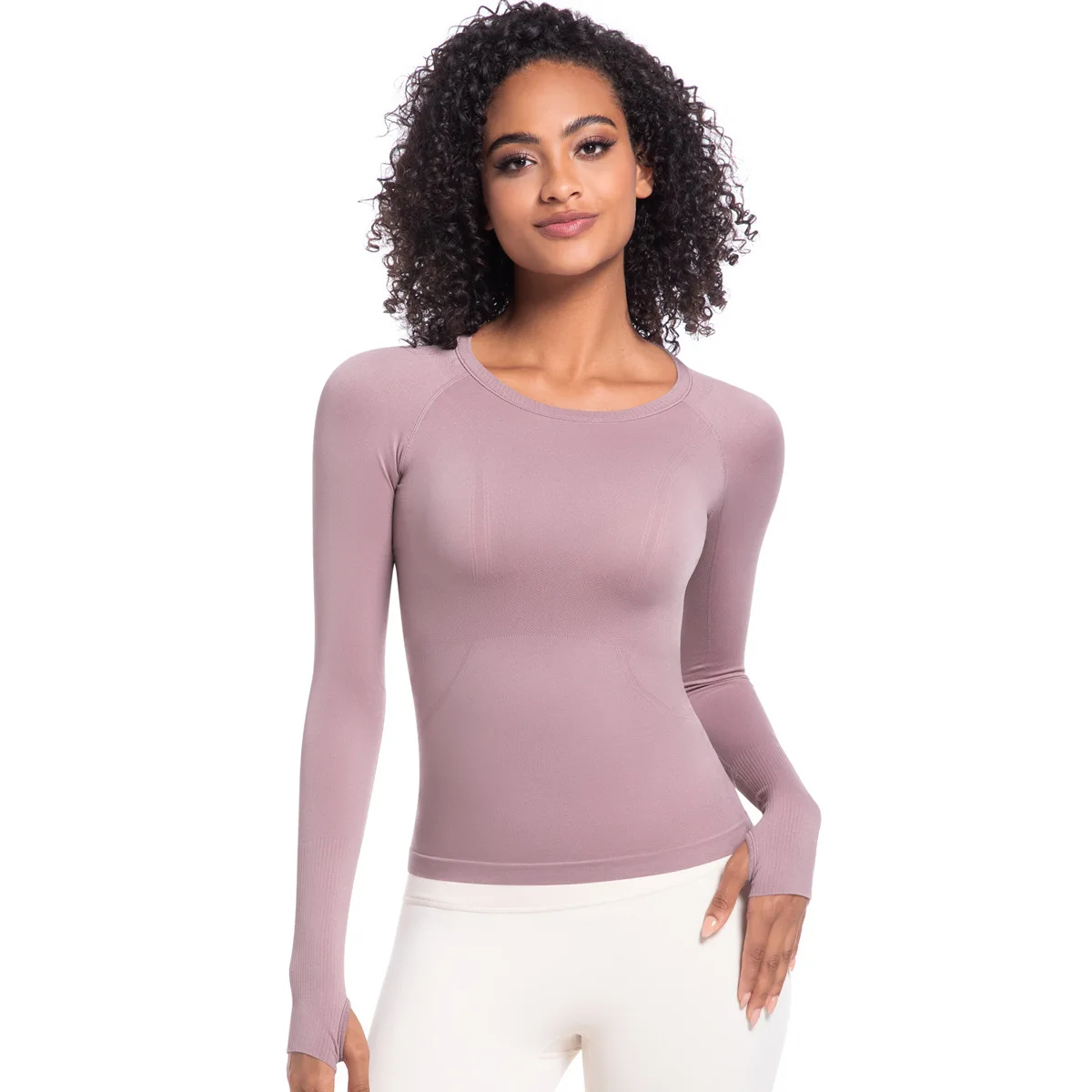 Women Plus Size Seamless Full Length Sports Top with Long Sleeves Quick Drying Front Logo for Yoga and Exercise