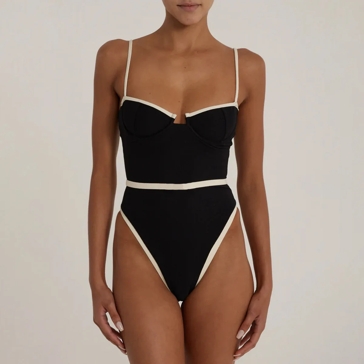 One Piece Swimsuit for Women, Sexy Patchwork High Cut Swimwear