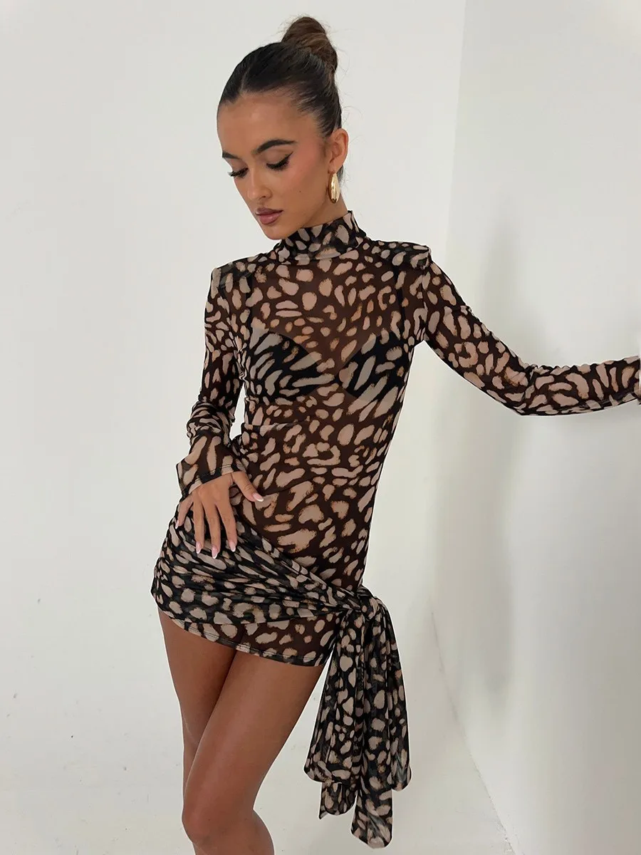Leopard Print Mesh Beach Skirt, Sexy Sheer Cover up for Women