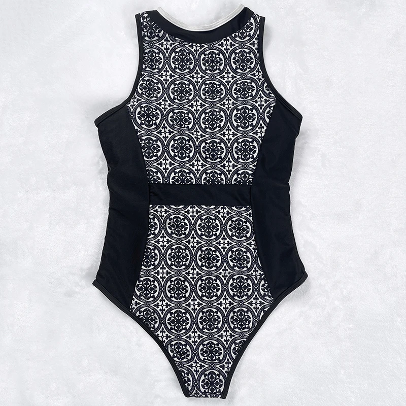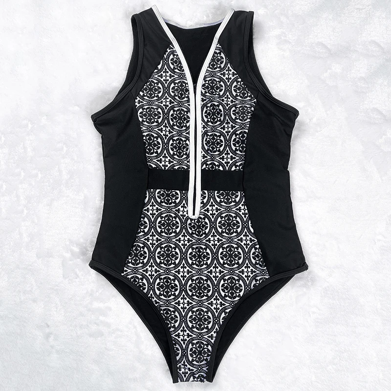 New Vintage One Piece Swimsuit Retro Zipper Swimwear Sexy Bathing Suits Women Hot Plus Size XL Bodysuit Monokini Beachwear