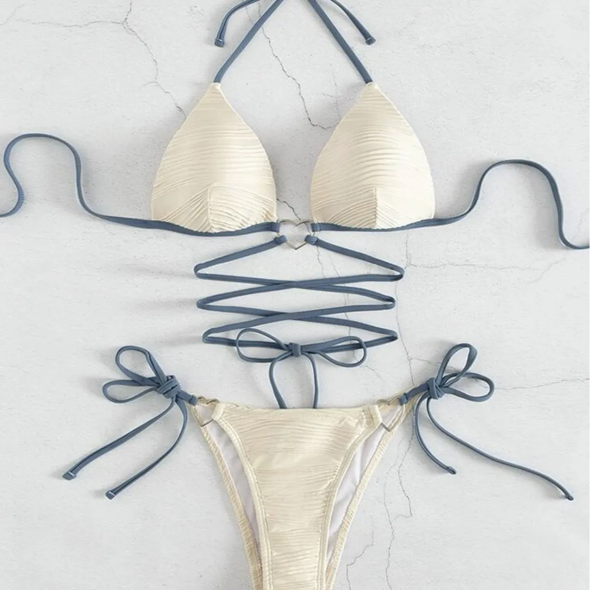 Women Hard Cup Bikini Swimsuit Heart Ring Accents Adjustable Drawstring Tie Side Design Sexy Two-Piece Spandex/Polyester