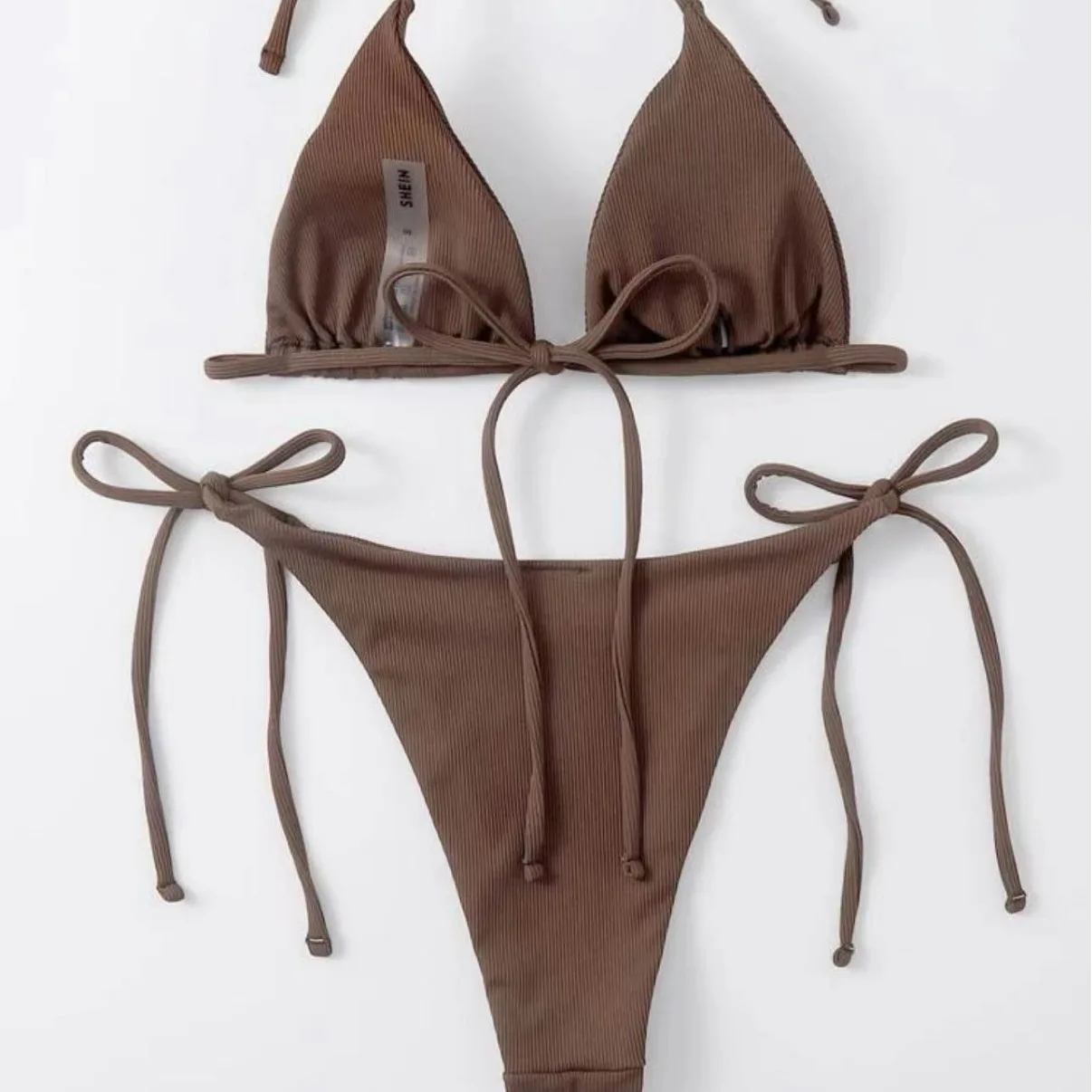 Sexy Strappy Halter Bikini for Women Two-Piece Triangle Tie Side Design Spandex/Polyester Breathable for Beach Pool Summer