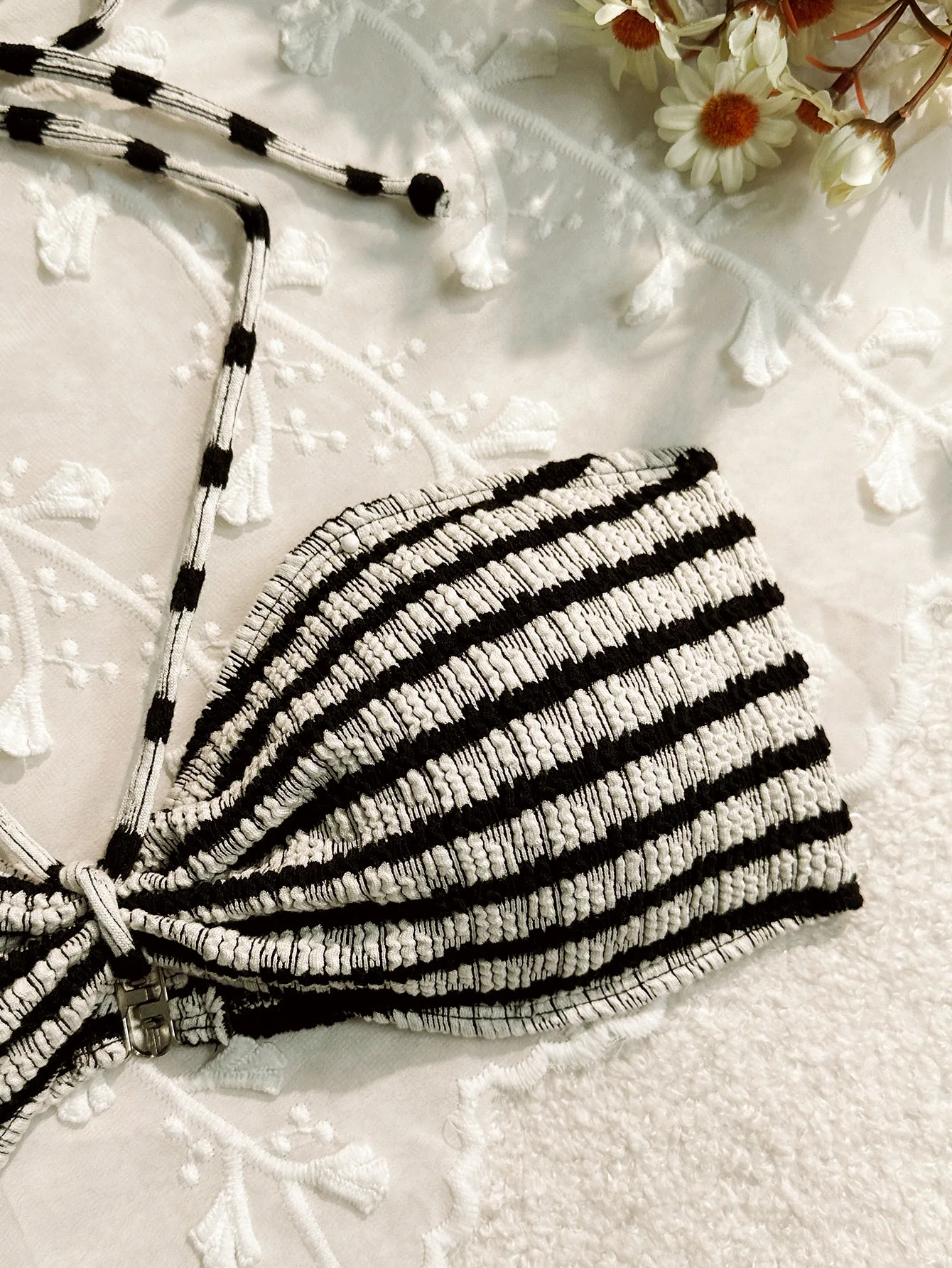 Sexy Strapless Bikini Set for Women Striped Print Two Piece Swimsuit with Tie Side Bottom and Bandeau Top Design
