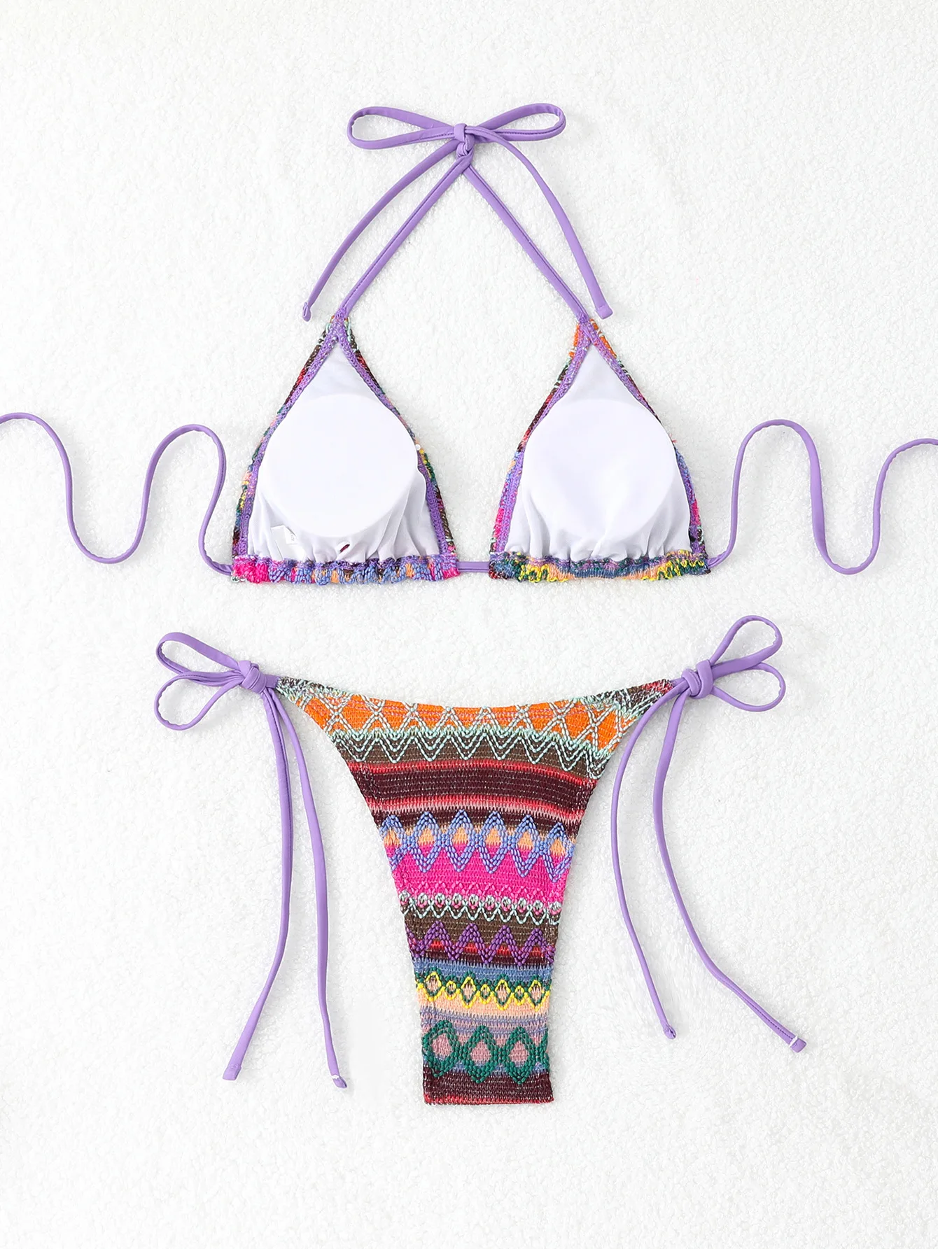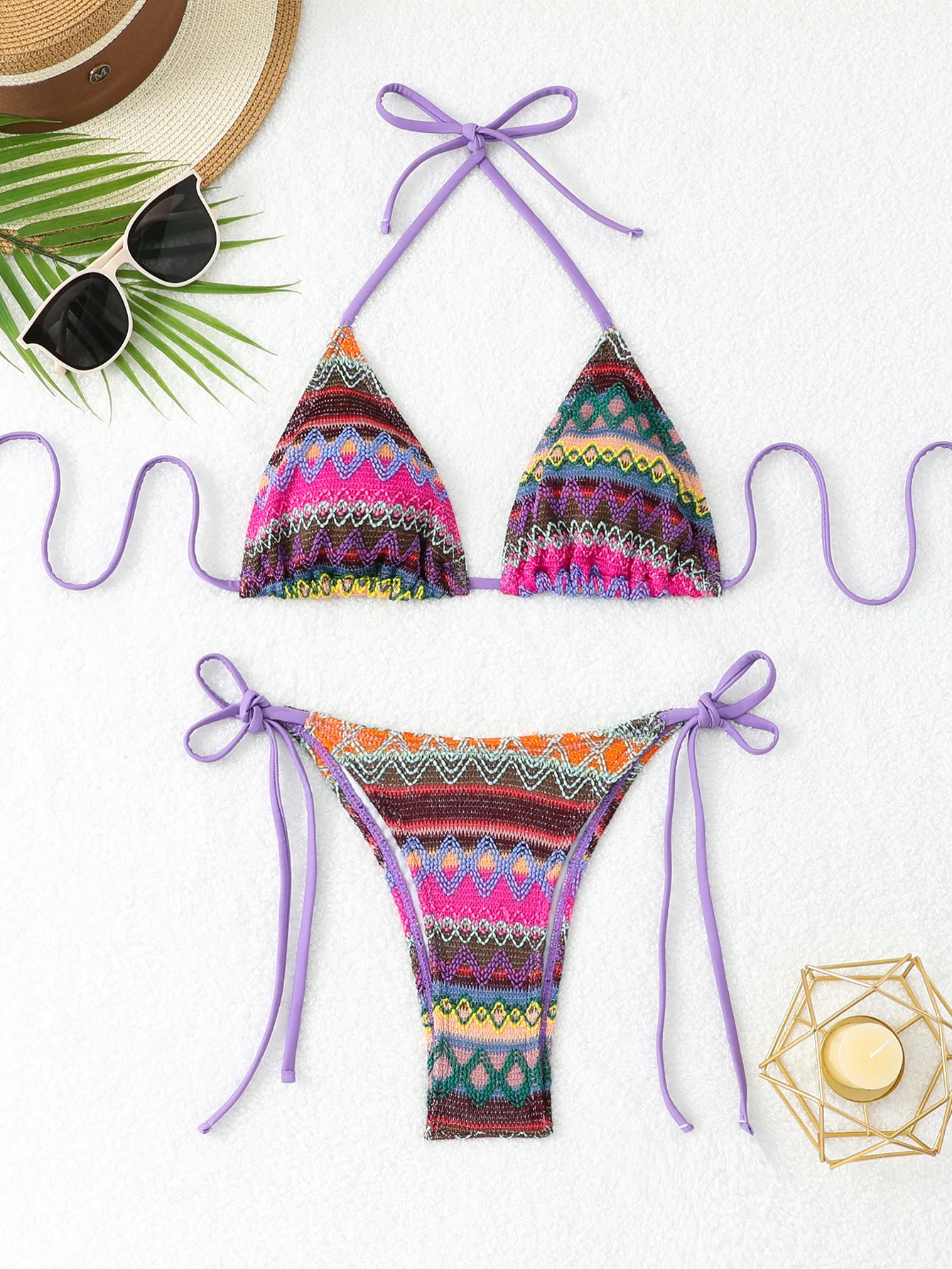 Women's Sexy Knit Halter Bikini V-Neck Tie Strap Swimsuit Thongs Bottom Two-Piece Set for Summer Beachwear
