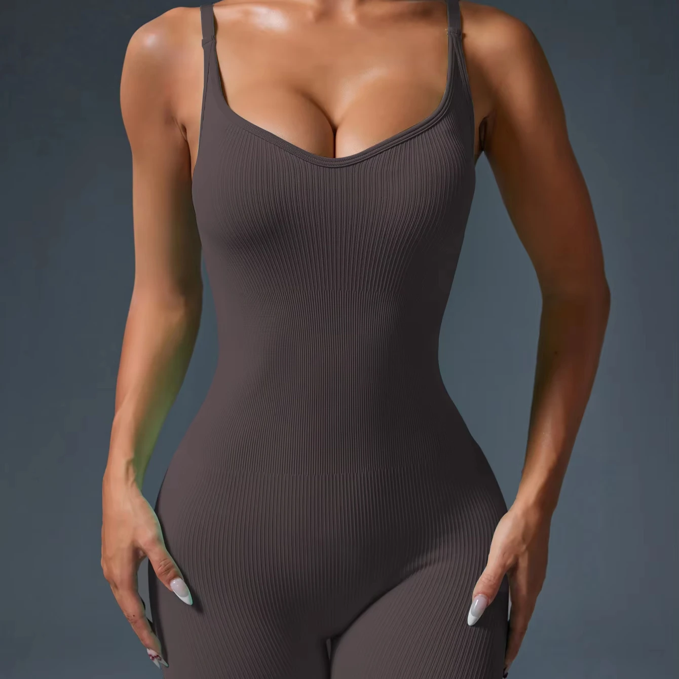 Seamless One Piece Yoga Bodysuit Women Shapewear Jumpsuit Spaghetti Strap Strapless Neckline Sweat-Wicking Breathable