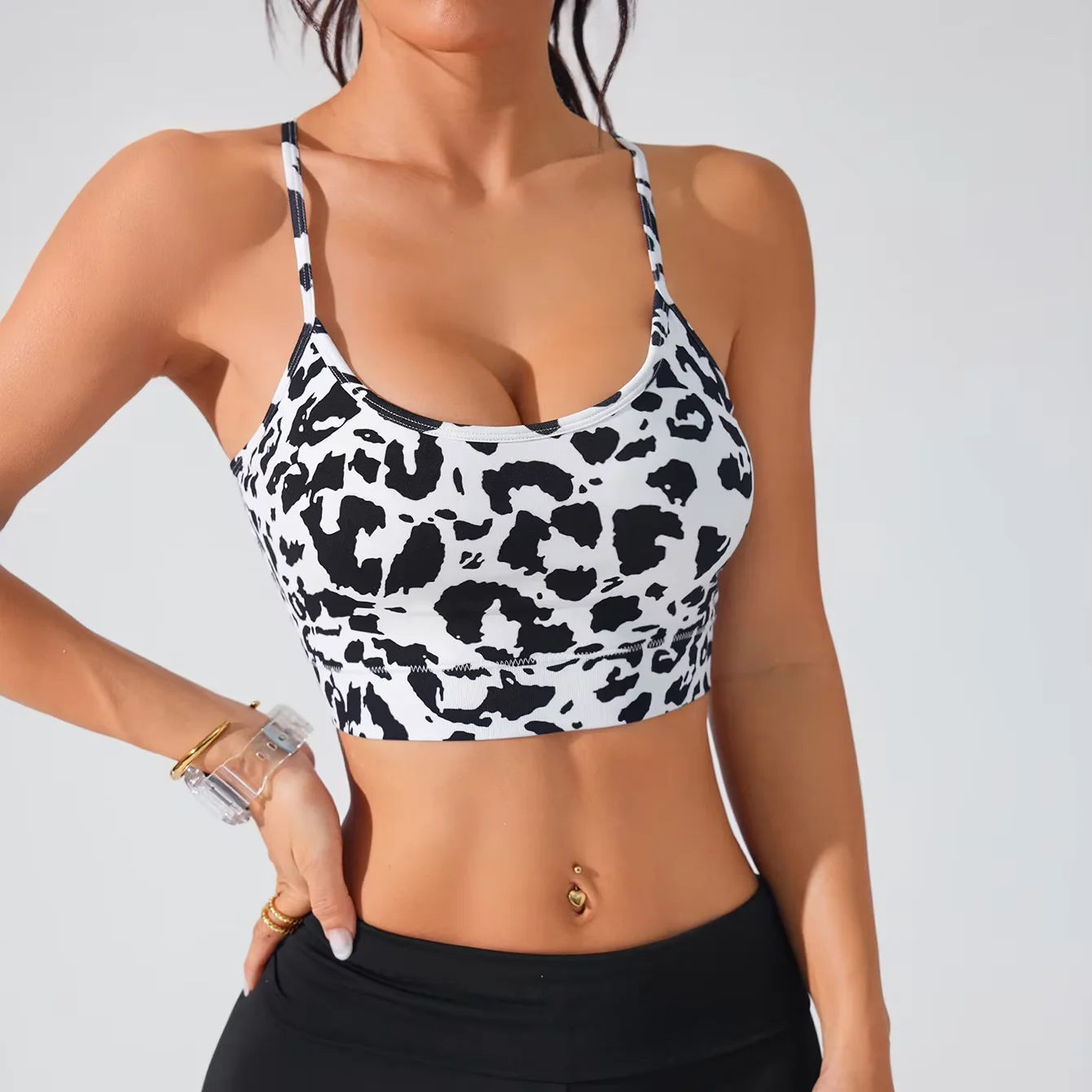 Floral Print Strappy Sports Bra for Women Cross Back Padded Yoga Top