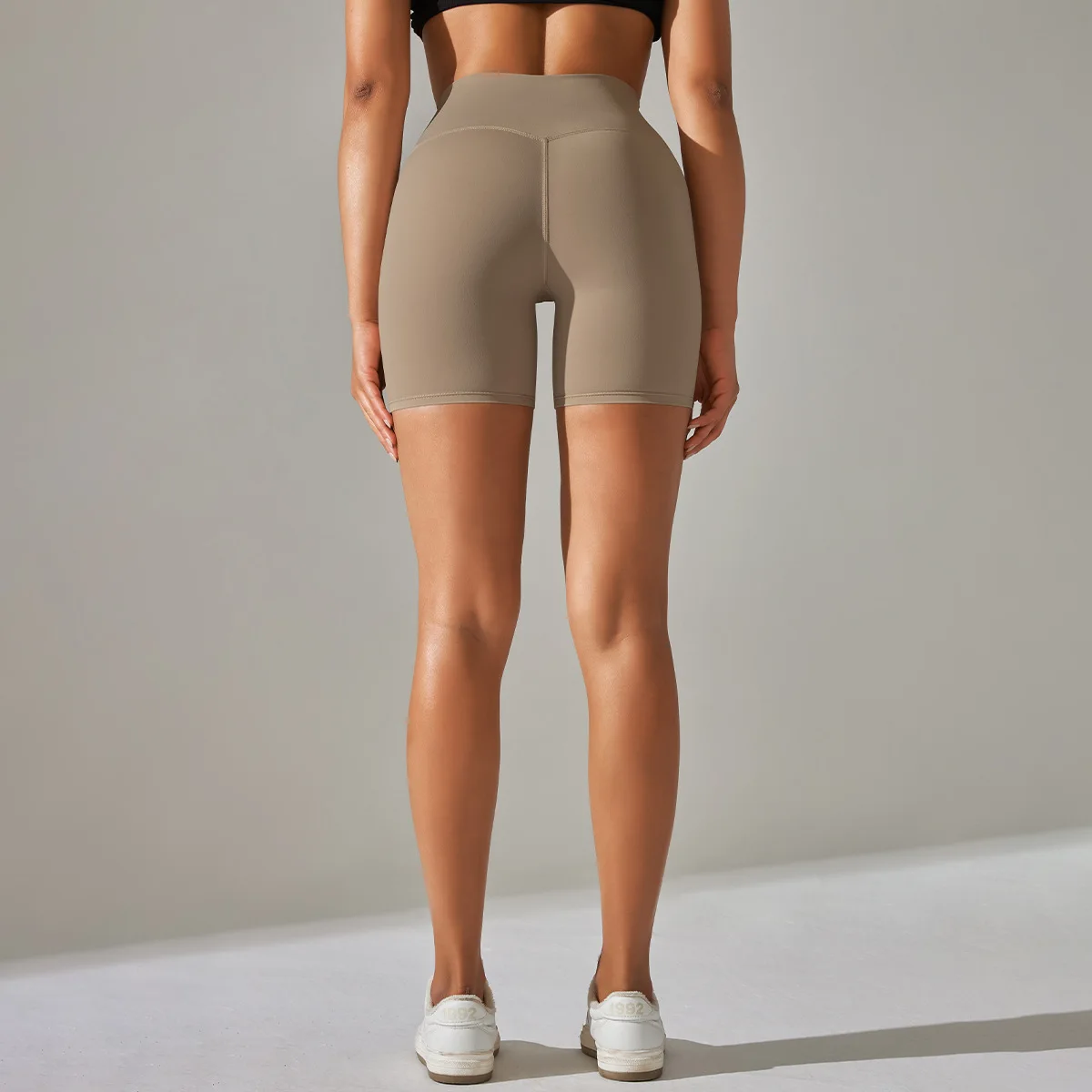 Solid Color Yoga Shorts for Women Double Brushed Tight Fit High Waist Stretch Gym Shorts