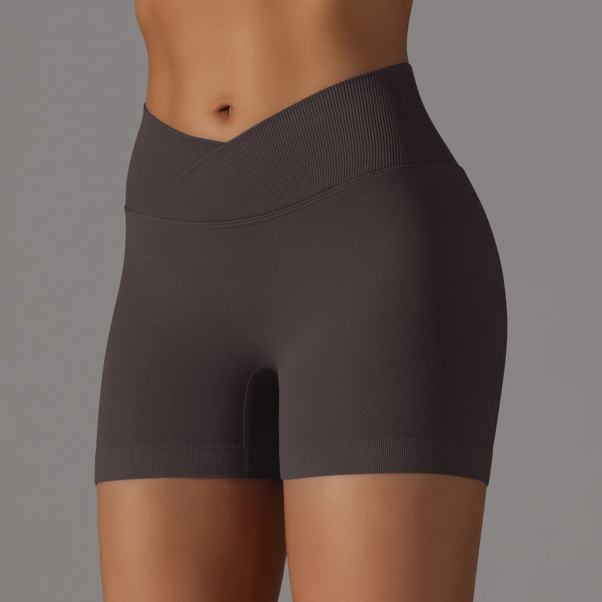 Body Shaping Seamless Cross Waist Peach Butt Yoga Shorts for Women Breathable Workout Running