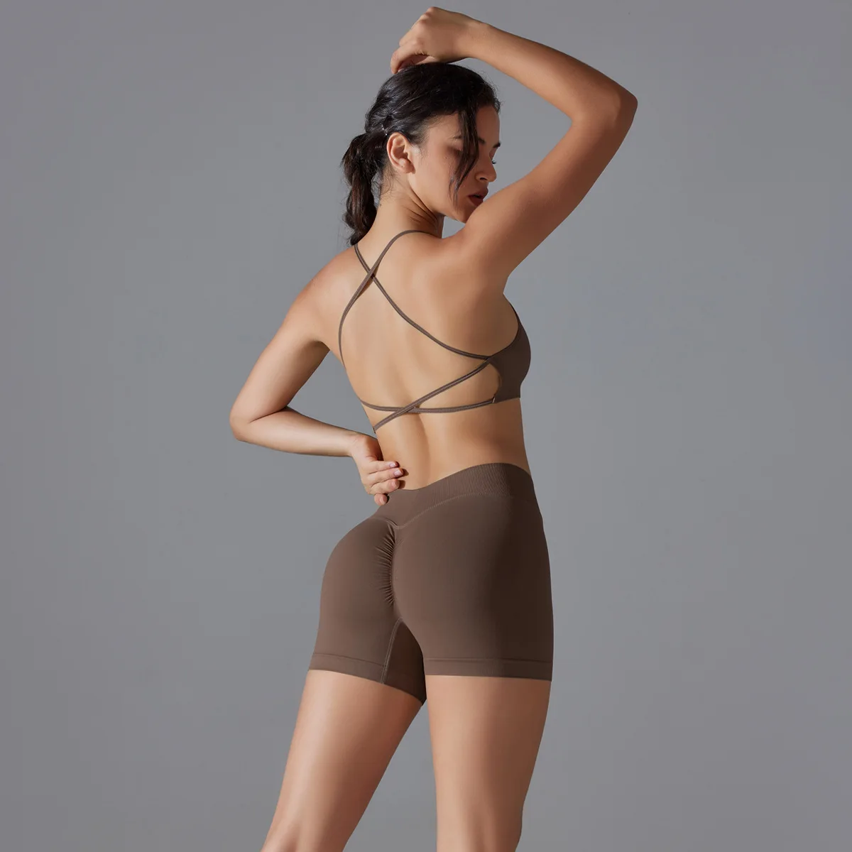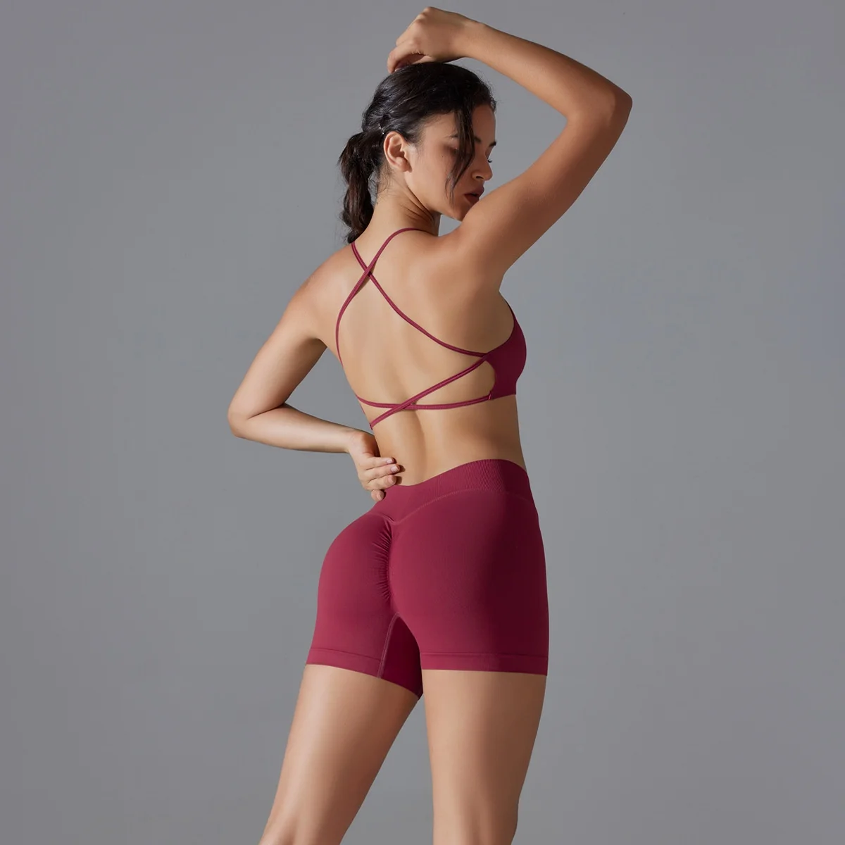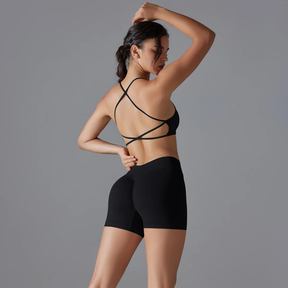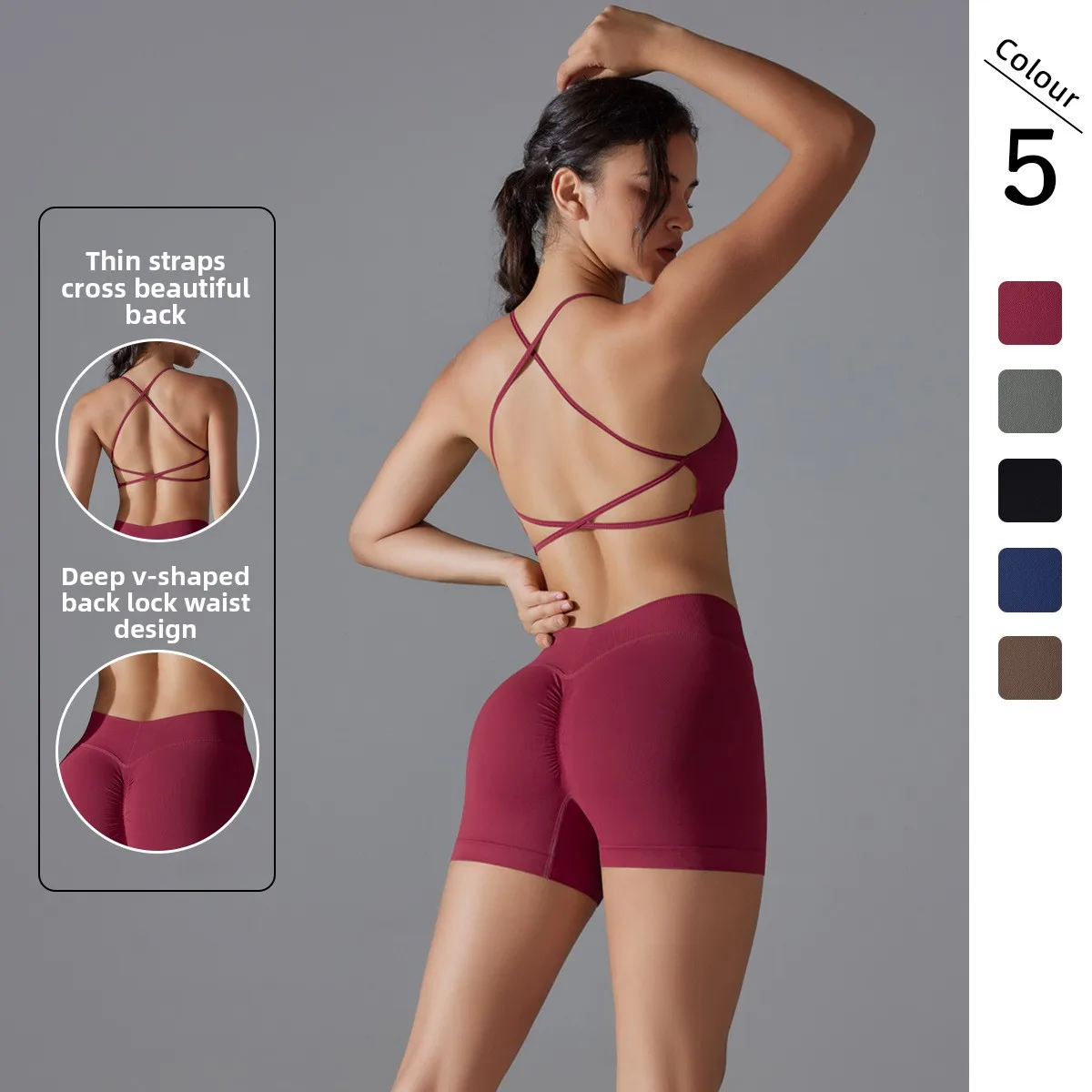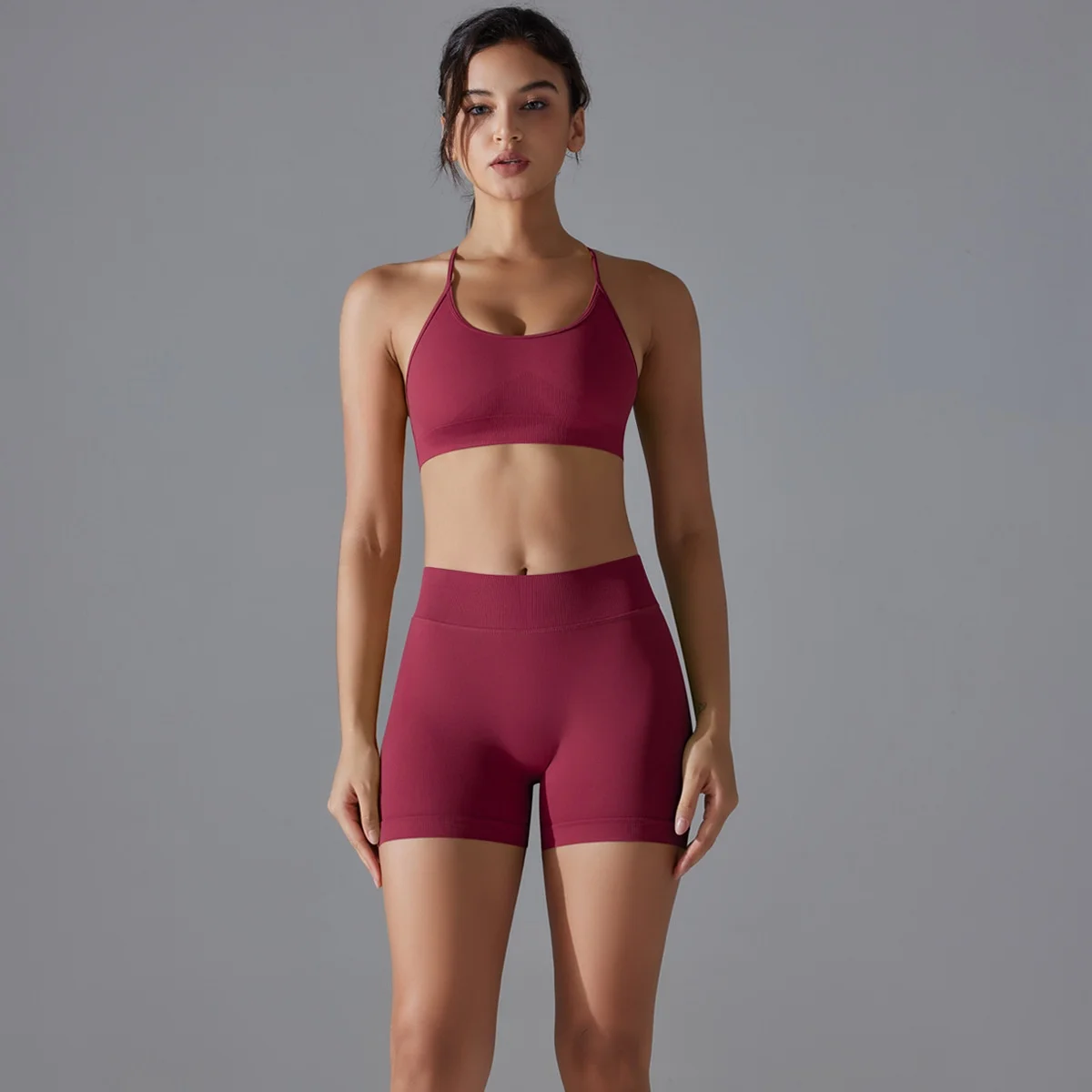 Seamless Solid Color Cross Back Yoga Set for Women Two Piece Tight Fit Workout Activewear