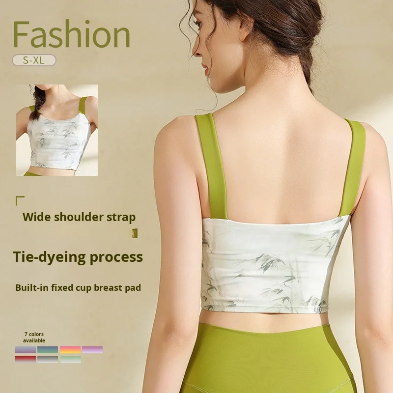 Seamless Yoga Top Set for Women, Wide Strap Sports Vest with Bra Pad for Training and Fitness, Yoga Sets with Leggings
