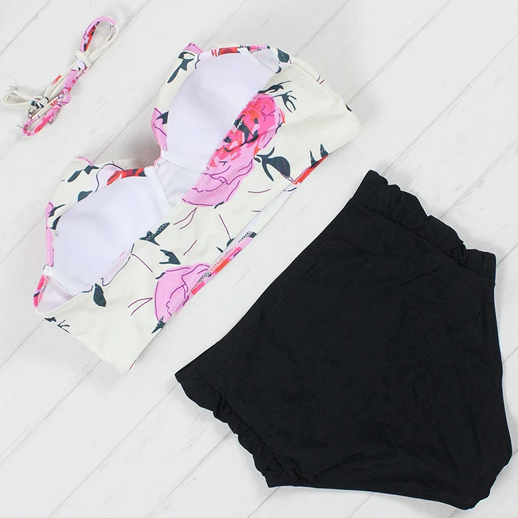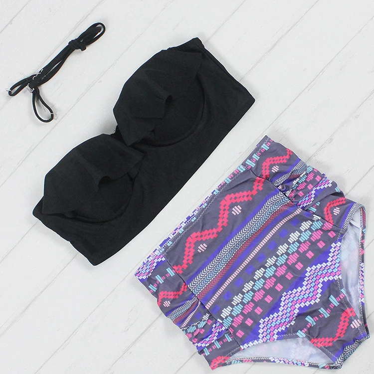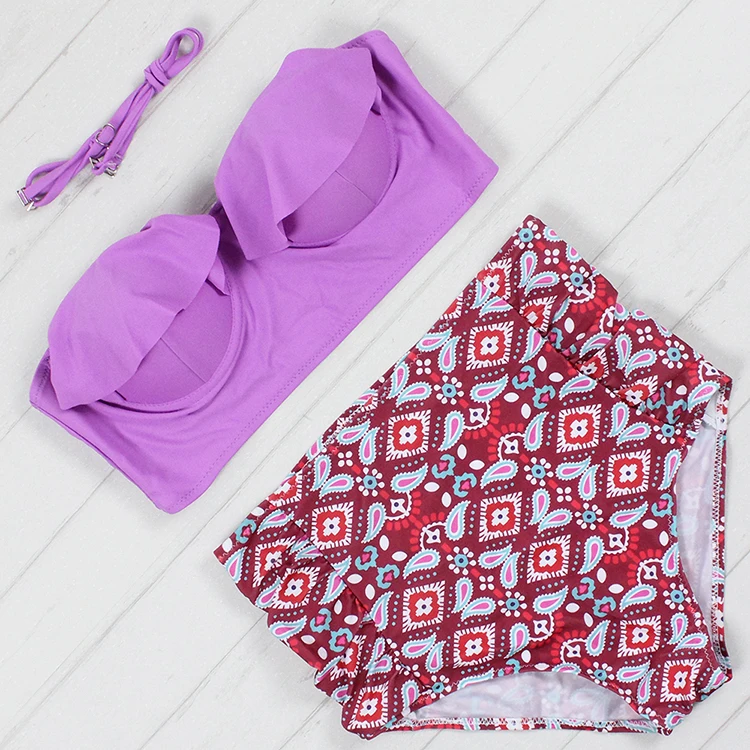 New Arrival Women High Waist Bikini Underwire Plus Size S-4XL Printed 2 Piece Set Swimwear