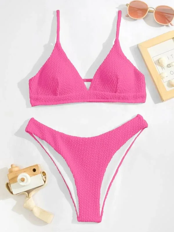Women's Sexy Solid Color Gingham Bikini Set 2-Piece Split Swimsuit