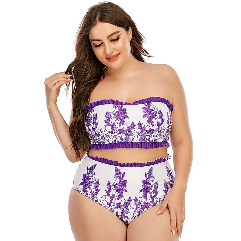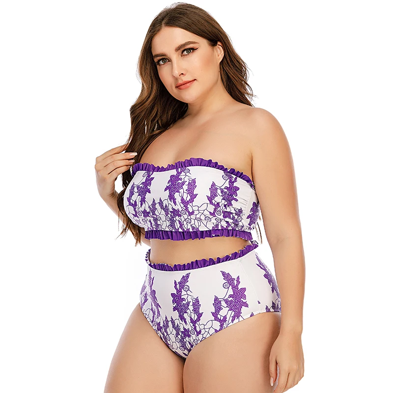Plus Size Women Bandeau Two Piece Bikini Floral Xxxxxl Swimsuits High Waisted Bottom Bathing Suit Push up Padded Swimwear