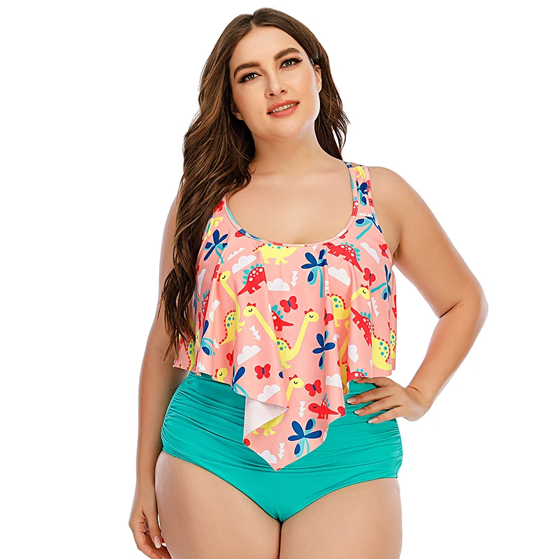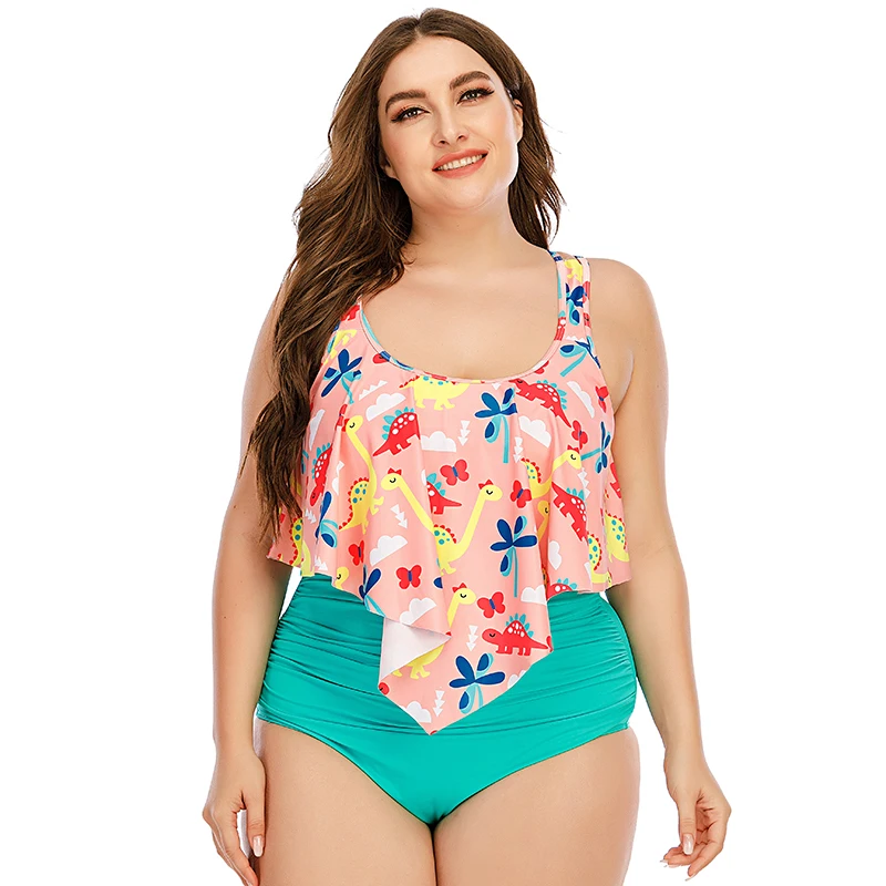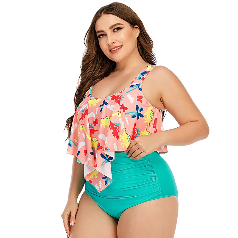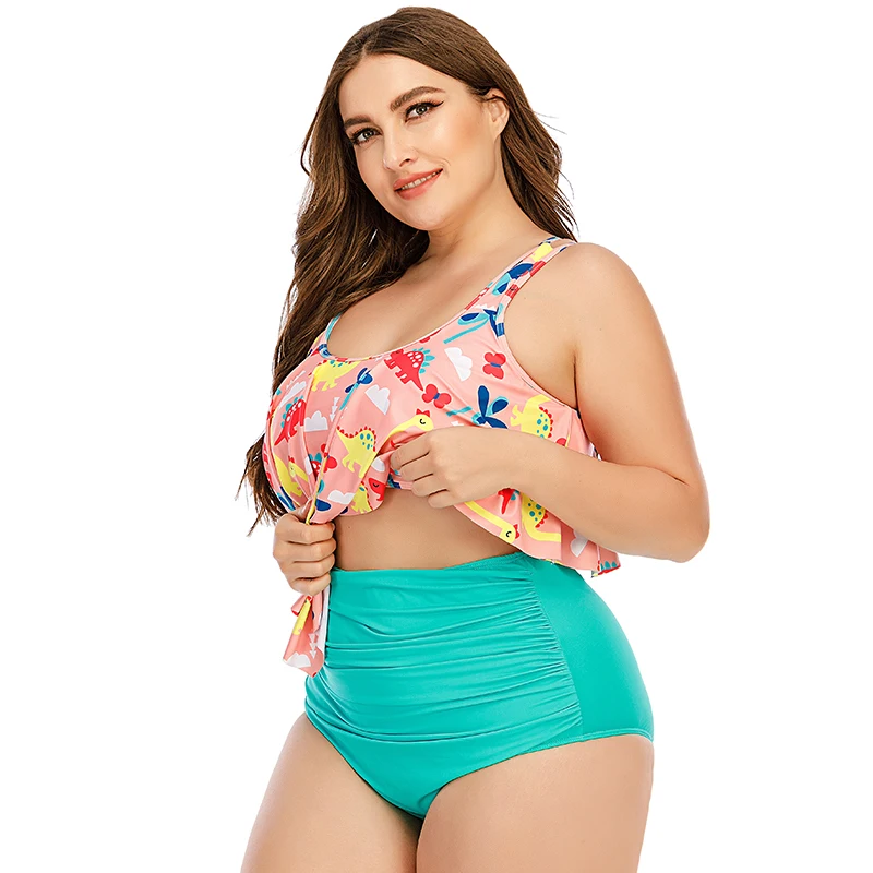 2022 High Quality Plus Size High Waist Tankini Bikini Set for Women Sexy Large Breast 5XL Two Pieces Swimsuit