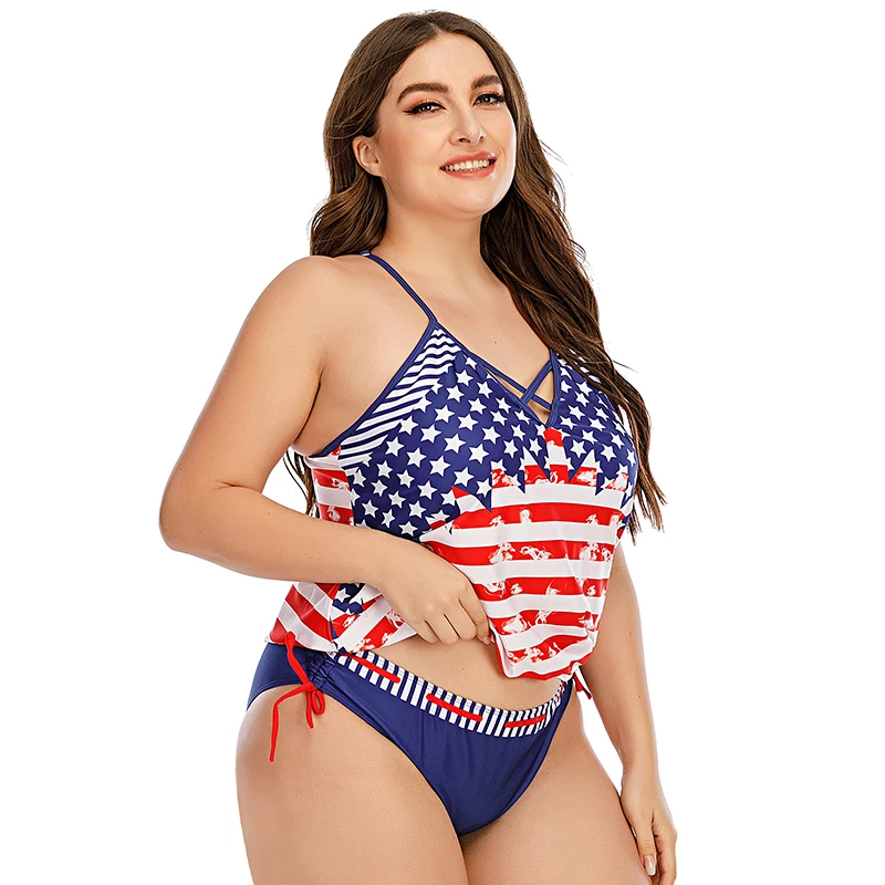 Hot Selling Plus Size Stars and Stripes Tankini Women Sexy Large Size High-Waist Bikini Two Pieces Swimsuit 2022 Beachwear
