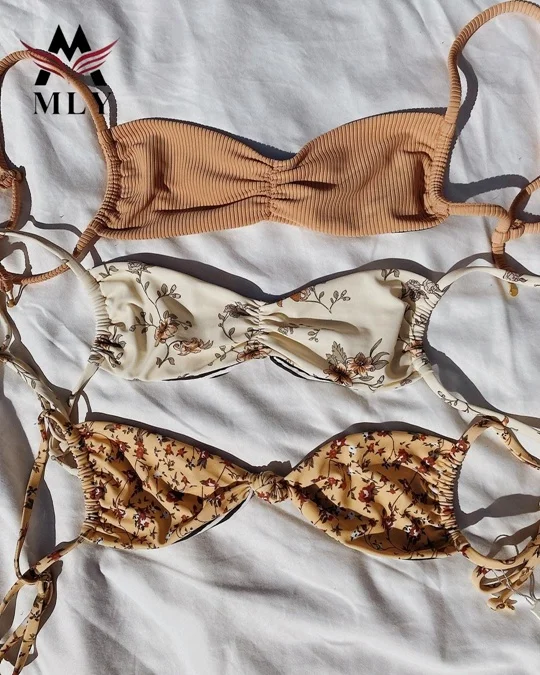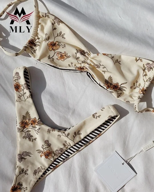 MLY Ruffle Bikini Summer Two Piece Suit Sexy Swimwear Bandage Biquini Triangle Swimsuit Printed Bathsuit