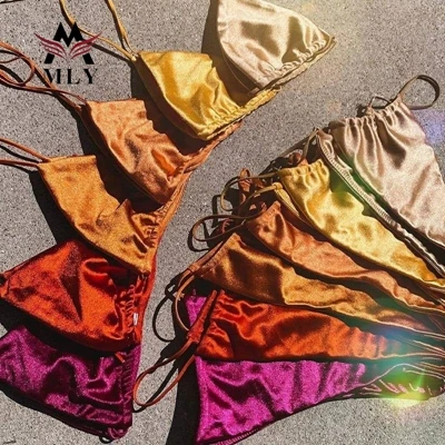 MLY Private Label Shiny Bikini Custom Sexy Ruffle Swimwear High Quality Wholesale Custom Swimsuit