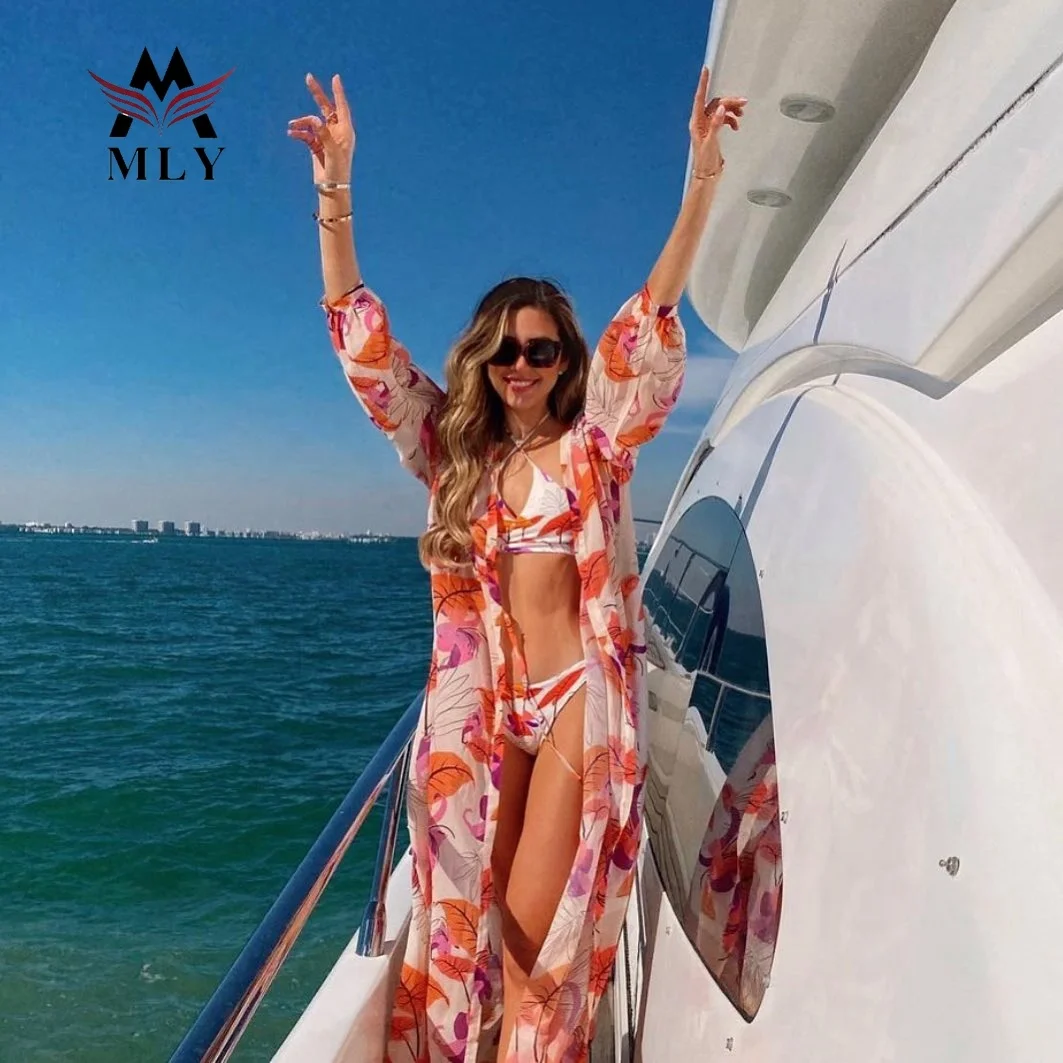 Customized Hawaiian Summer Printed Cover up Dress Girls Swimwear Beachwear for Women