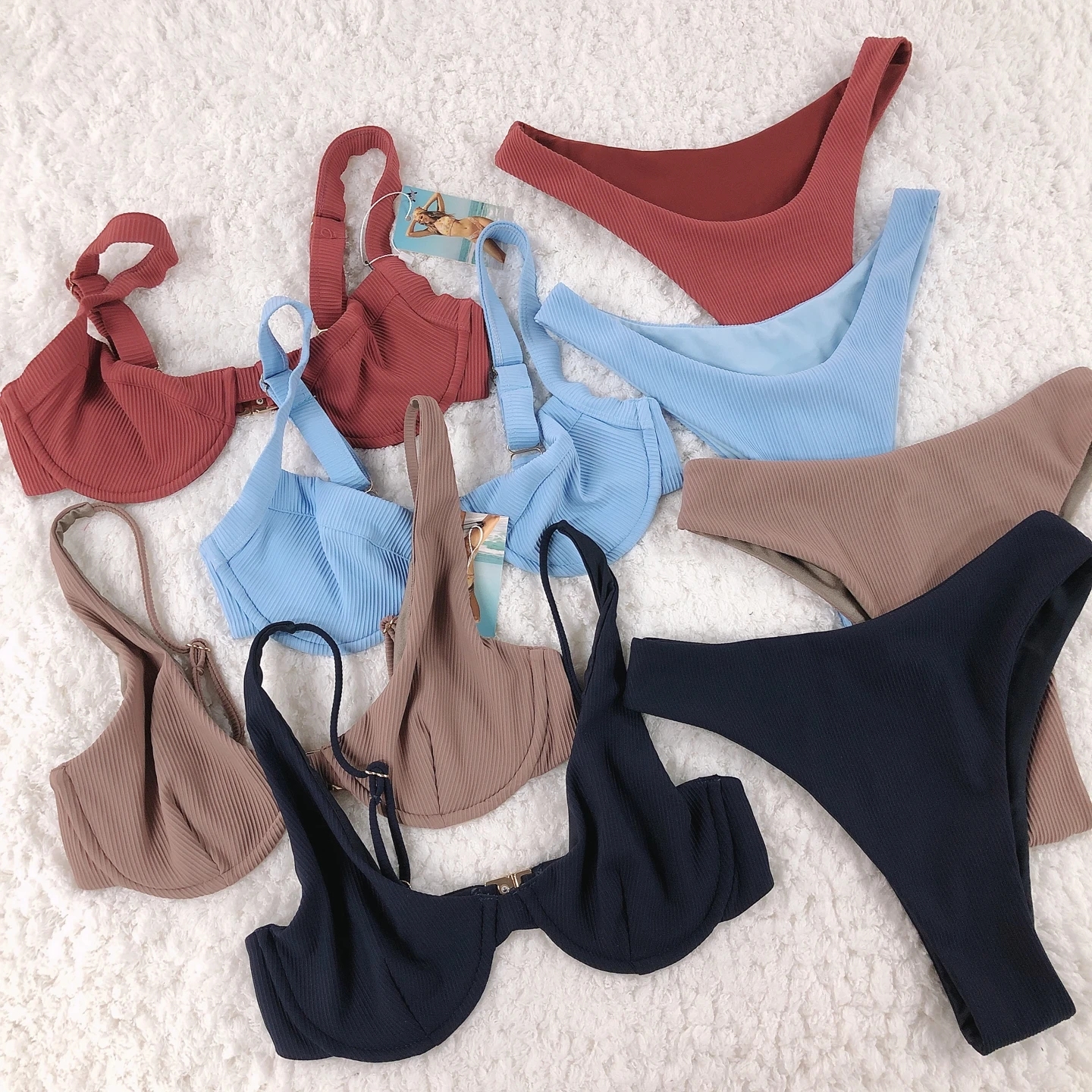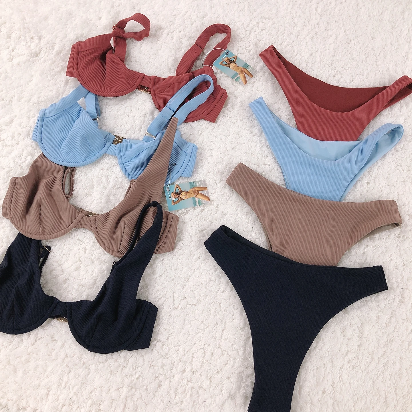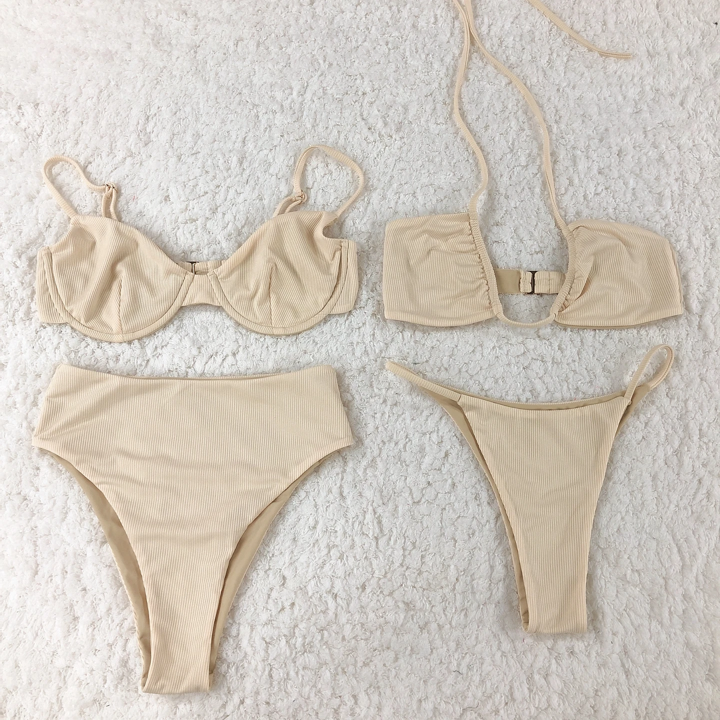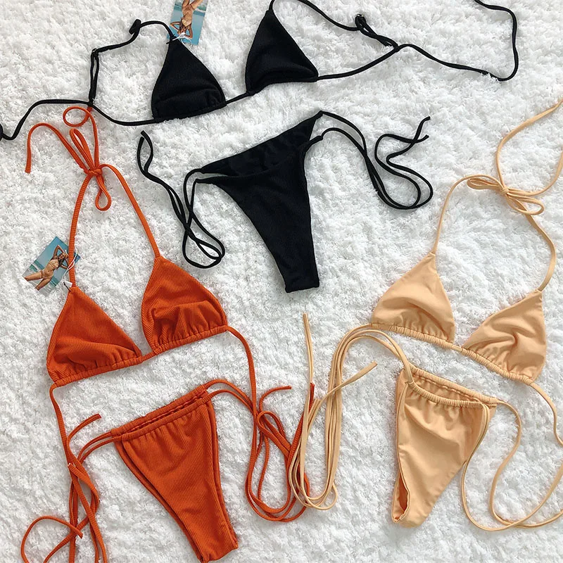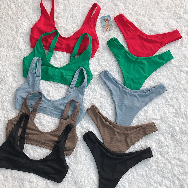 New Arrival High Waist Solid Color Fashion Halter Swimwear Solid Color Swimsuit Sexy Bikini Thong Swimwear