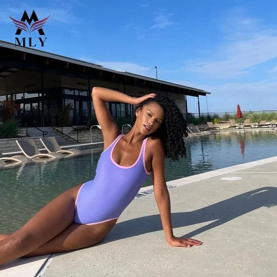 MLY Factory Wholesale Bikini Custom Sexy Bodysuit Jumpsuit Beachwear Backless Striped Print One Piece Swimwear