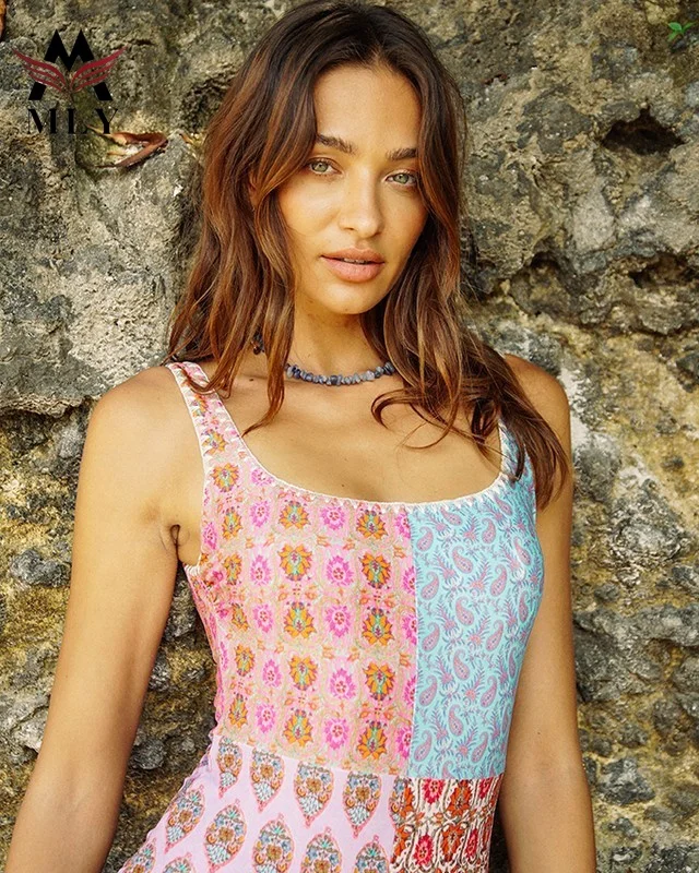 MLY Factory Wholesale Bikini Custom Sexy Bodysuit Jumpsuit Beachwear Backless Striped Print One Piece Swimwear