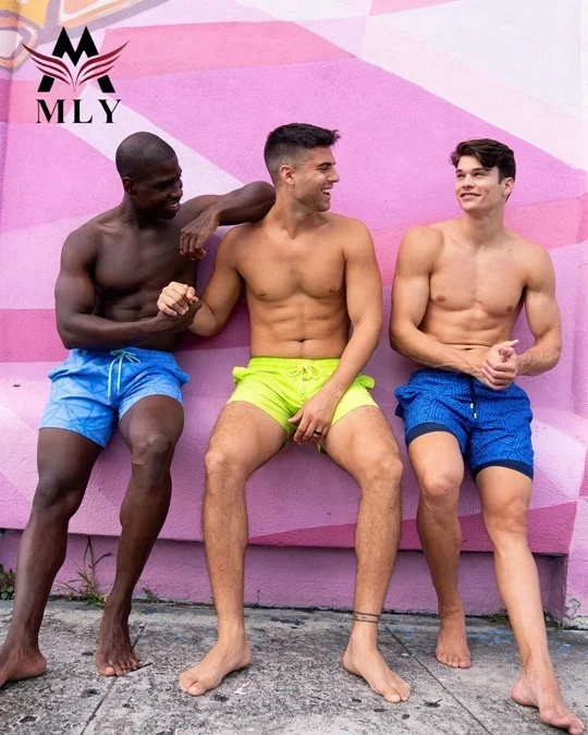 100% Polyester Men Beach Shorts Waterproof Print Board Shorts Mens Swimsuit