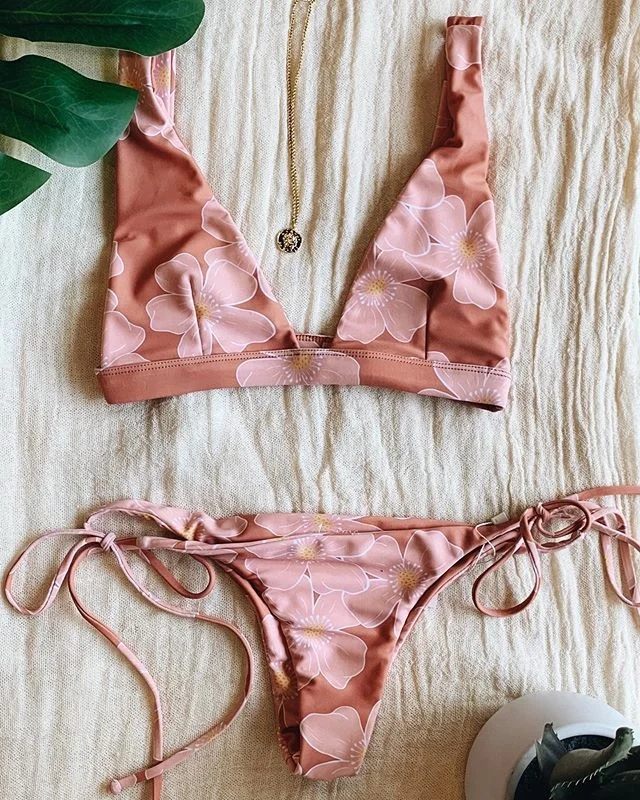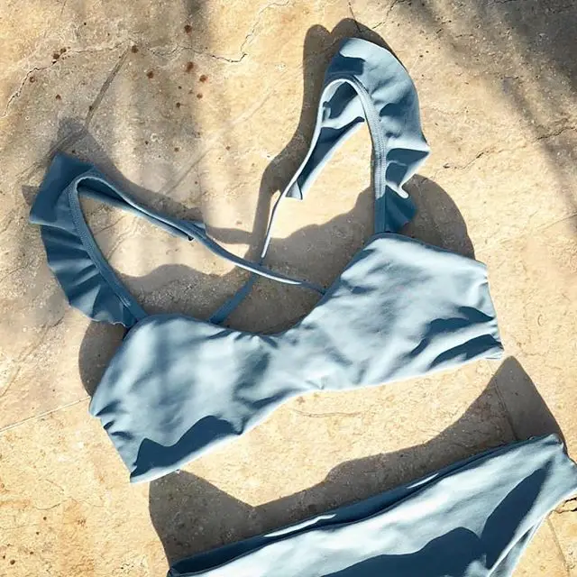 MLY Ruffle Bikini Summer Two Piece Suit Sexy Swimwear Bandage Biquini Triangle Swimsuit Printed Bathsuit