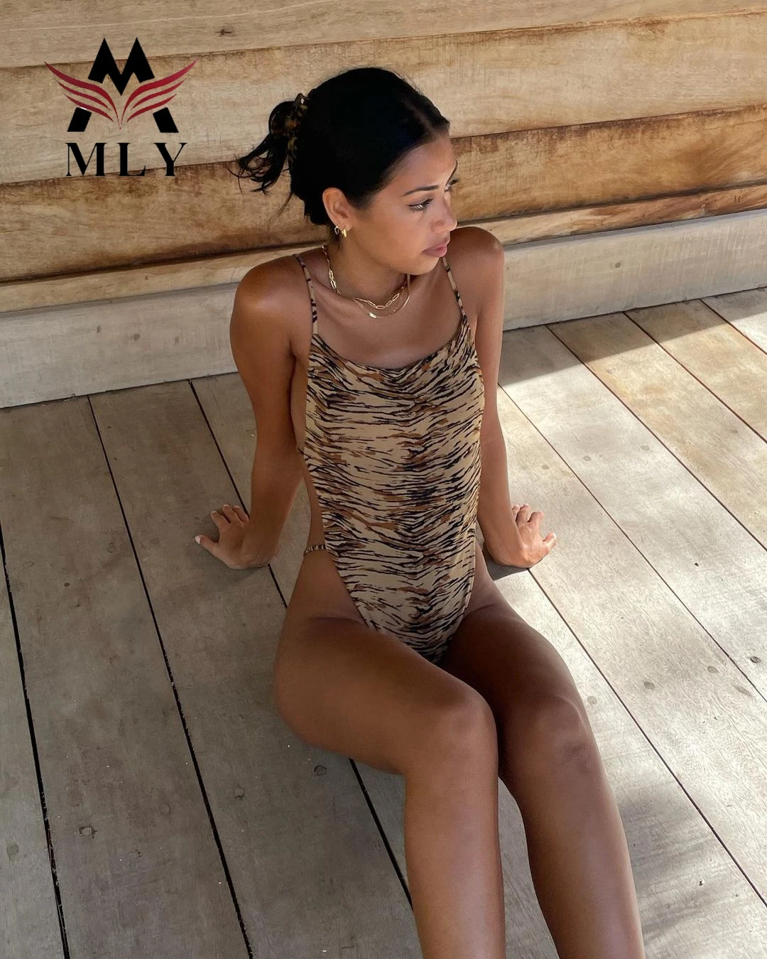 MLY Factory Wholesale Bikini Custom Sexy Bodysuit Jumpsuit Beachwear Backless Striped Print One Piece Swimwear
