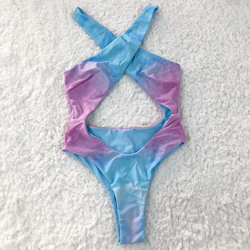 MLY Factory Wholesale Bikini Custom Sexy Bodysuit Jumpsuit Beachwear Backless Striped Print One Piece Swimwear