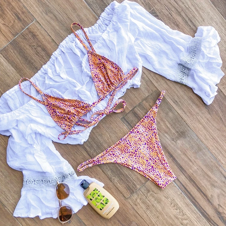 MLY Ruffle Bikini Summer Two Piece Suit Sexy Swimwear Bandage Biquini Triangle Swimsuit Printed Bathsuit