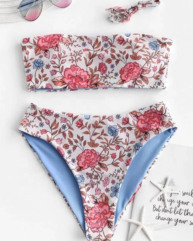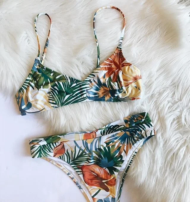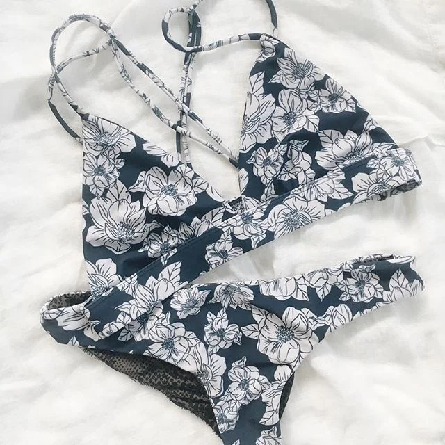 MLY Ruffle Bikini Summer Two Piece Suit Sexy Swimwear Bandage Biquini Triangle Swimsuit Printed Bathsuit