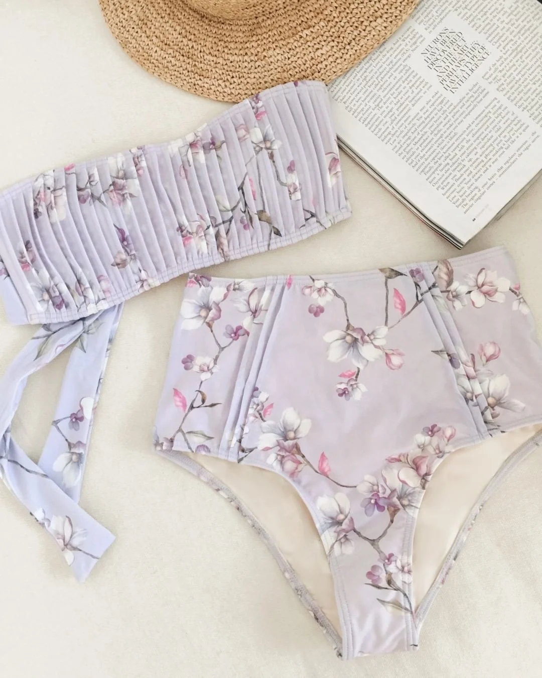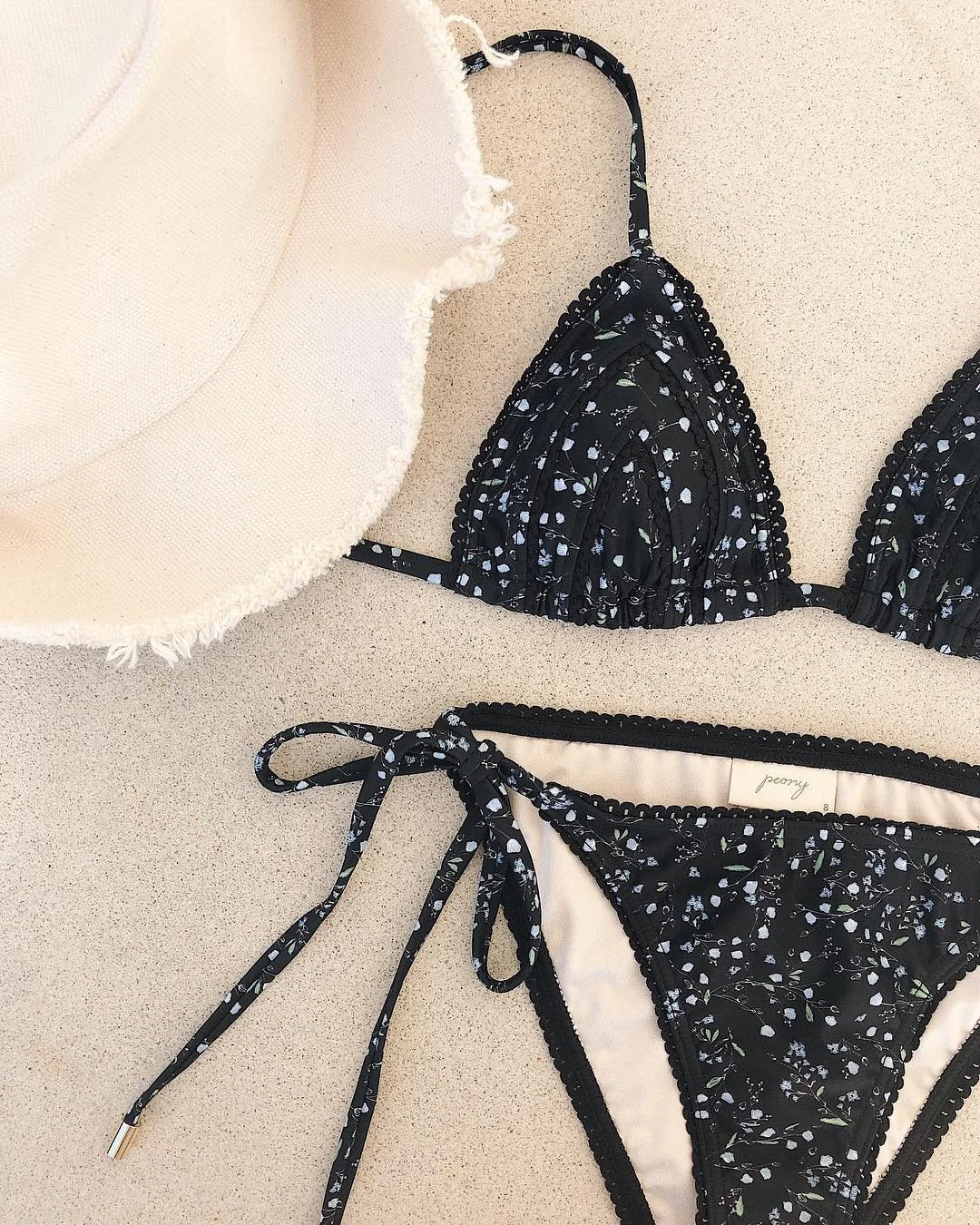 MLY Ruffle Bikini Summer Two Piece Suit Sexy Swimwear Bandage Biquini Triangle Swimsuit Printed Bathsuit