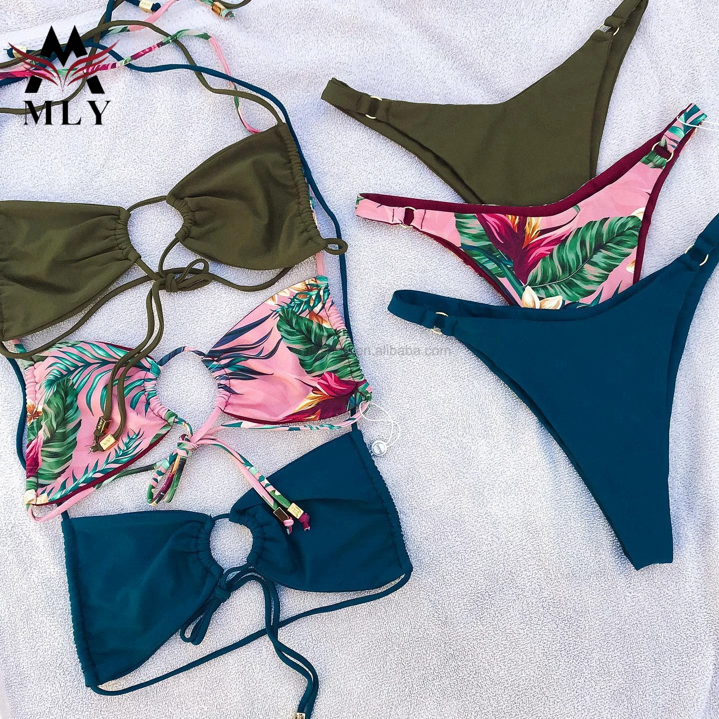 MLY Ruffle Bikini Summer Two Piece Suit Sexy Swimwear Bandage Biquini Triangle Swimsuit Printed Bathsuit