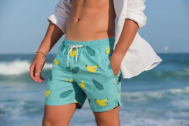 Quick Dry Polyester Elastic Waist Mens Print Board Shorts Custom Made Swim Trunks