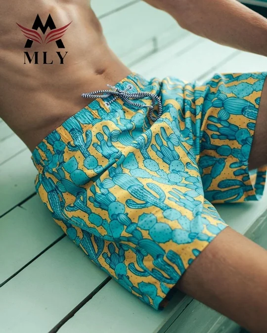 Men Waterproof Swimwear 100% Polyester Swim Shorts Slim Fit Swim Trunks