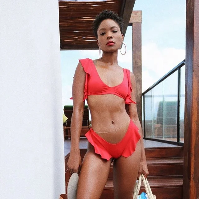 MLY Ruffle Bikini Summer Two Piece Suit Sexy Swimwear Bandage Biquini Triangle Swimsuit Printed Bathsuit