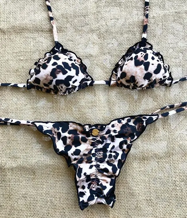 MLY Ruffle Bikini Summer Two Piece Suit Sexy Swimwear Bandage Biquini Triangle Swimsuit Printed Bathsuit