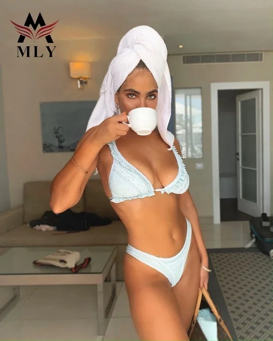 MLY Ruffle Bikini Summer Two Piece Suit Sexy Swimwear Bandage Biquini Triangle Swimsuit Printed Bathsuit