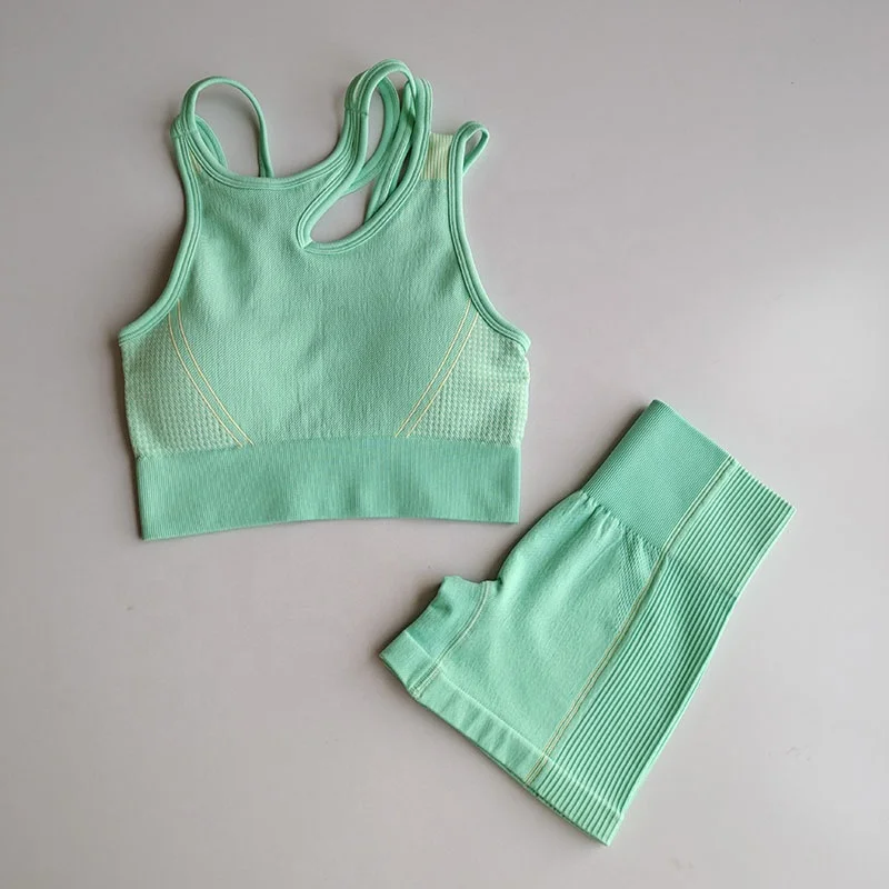 Custom Summer Bodybuilding Workout Gym Fitness Bra Yoga Wear Seamless Yoga Shorts Set