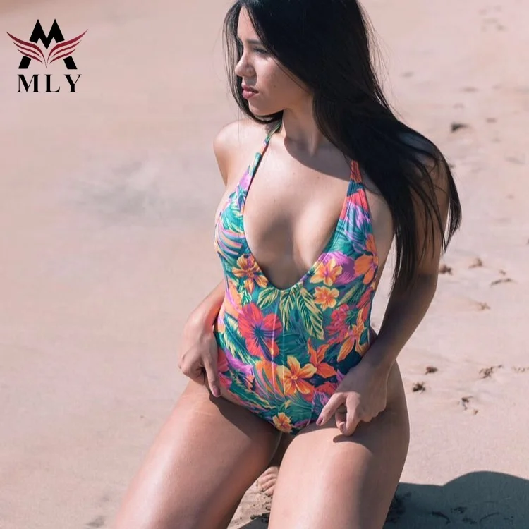 MLY Factory Wholesale Bikini Custom Sexy Bodysuit Jumpsuit Beachwear Backless Striped Print One Piece Swimwear