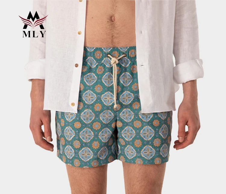 MLY Custom Logo Men's Swim Trunks Quick Dry Running 100% Polyester Beach Shorts With Pockets