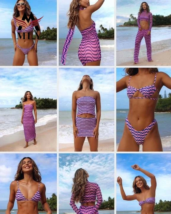 MLY Factory Wholesale Bikini Custom Sexy Bodysuit Jumpsuit Beachwear Backless Striped Print One Piece Swimwear