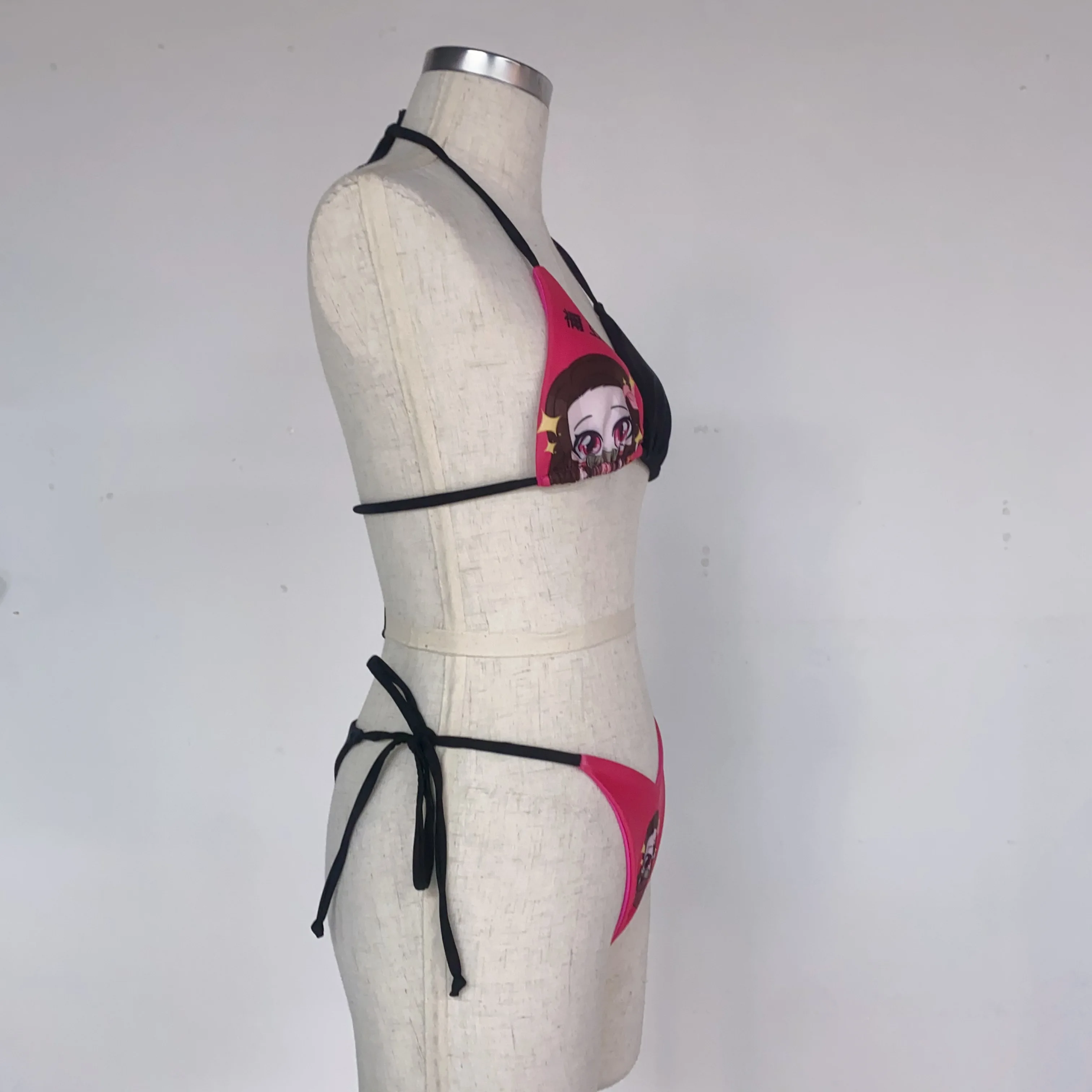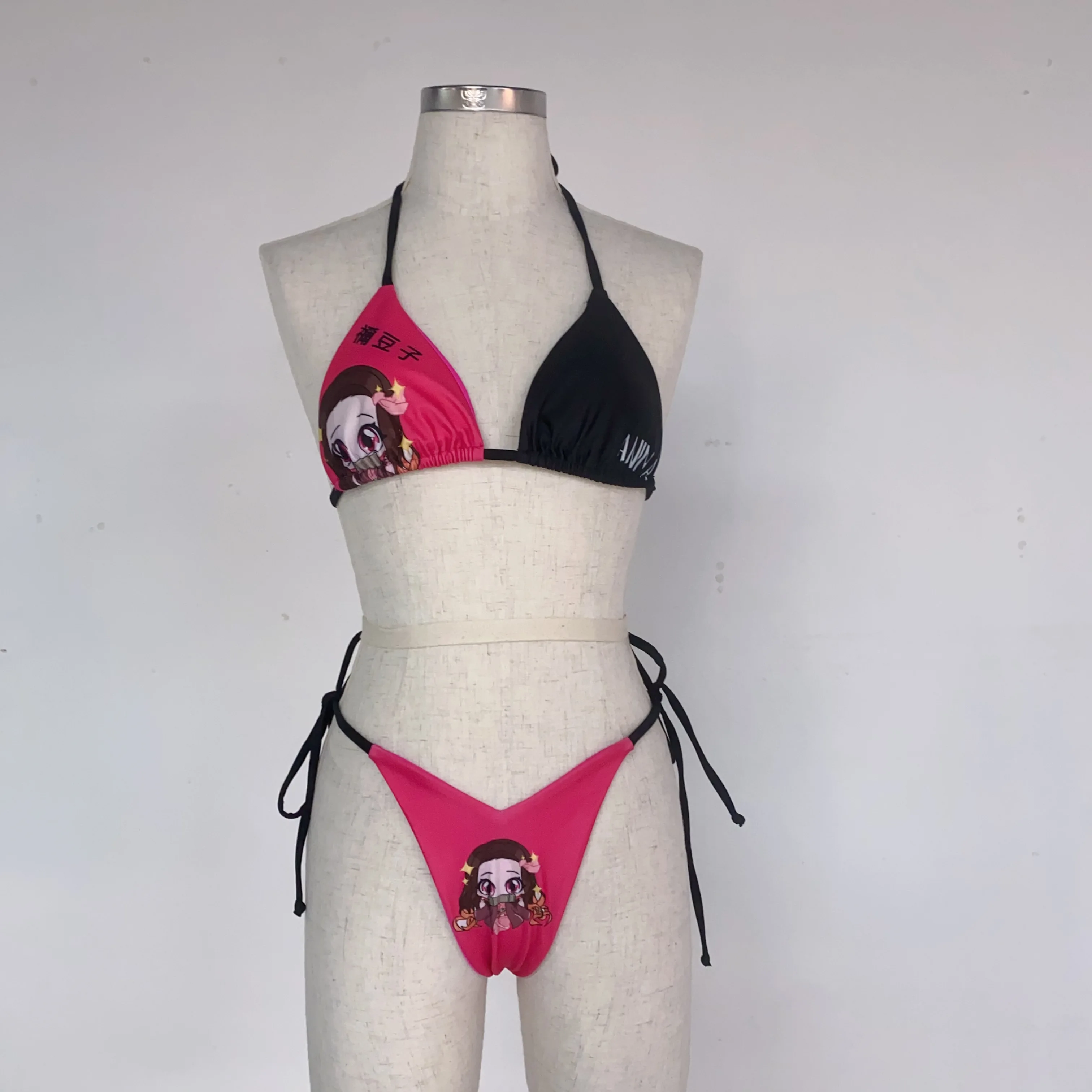 European and American Halter Y2K Style Print Bikini Crystal High Waist Micro Two Piece Swimsuit