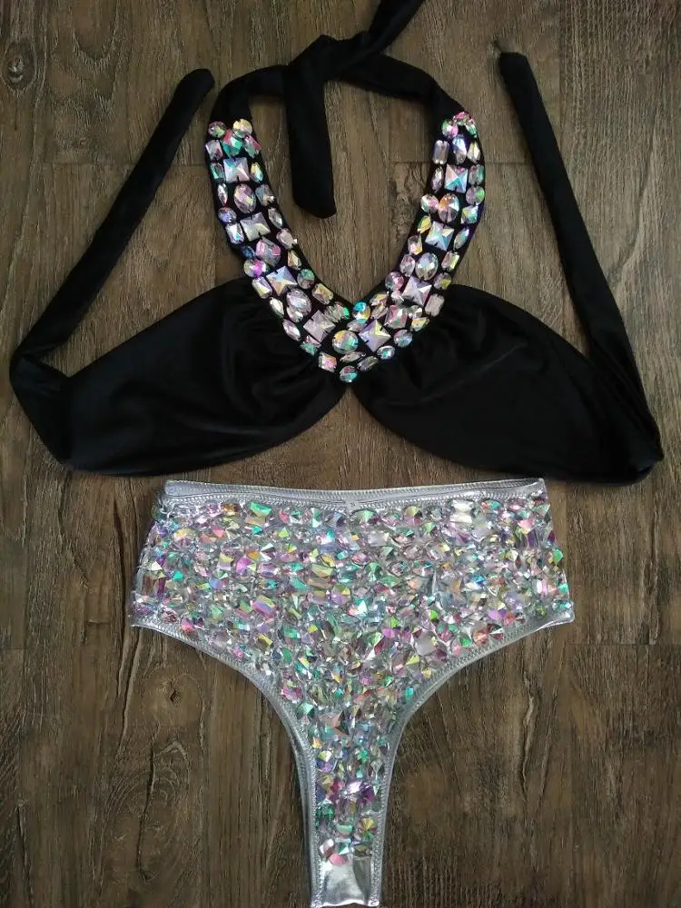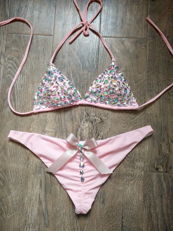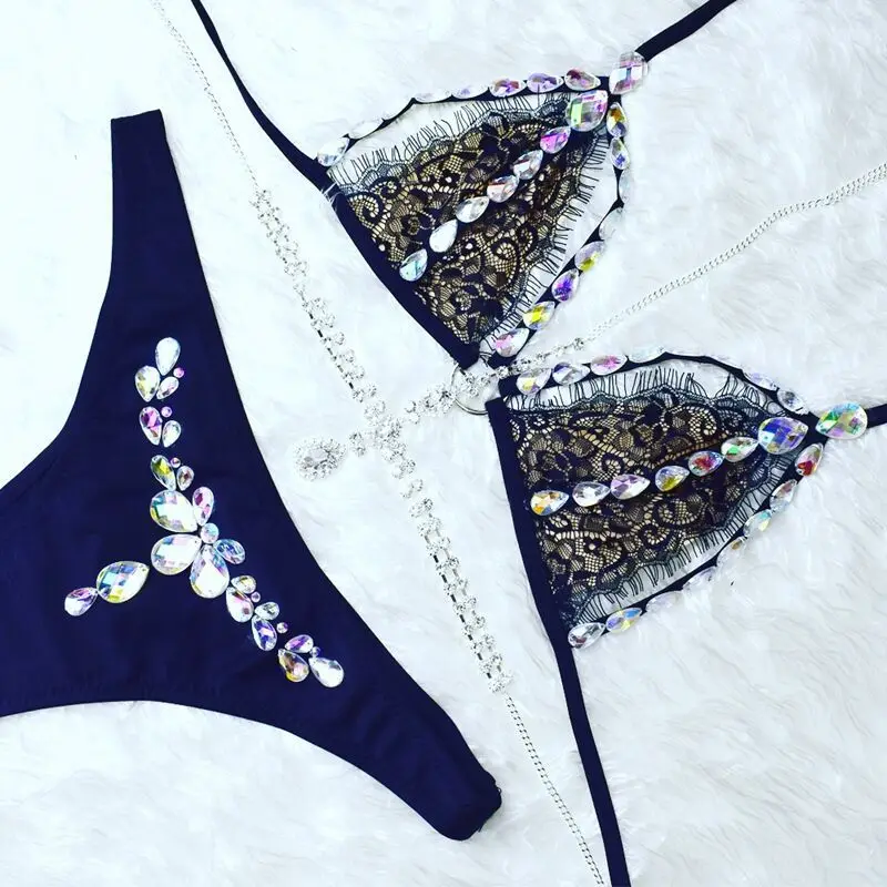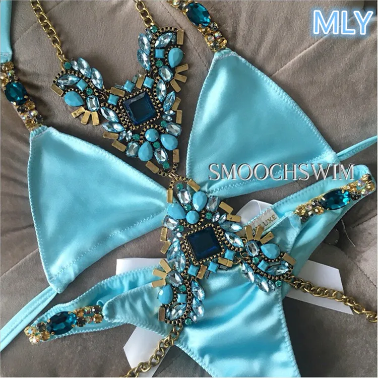 MLY Wholesale Green Stone Custom Bikini Sexy Women Swimwear Rhinestone Bikini