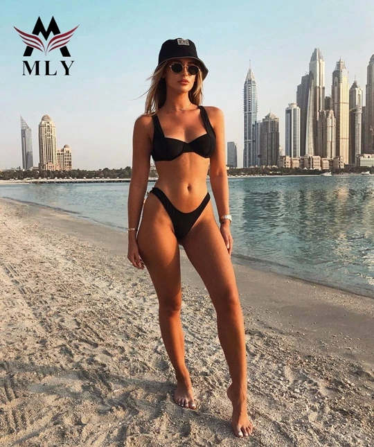 MLY Best Selling Solid Black and White Women Ladies Beachwear Custom Swimwear Sexy Micro Bikini Bathing Suits