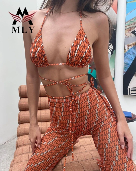MLY Ruffle Bikini Summer Two Piece Suit Sexy Swimwear Bandage Biquini Triangle Swimsuit Printed Bathsuit
