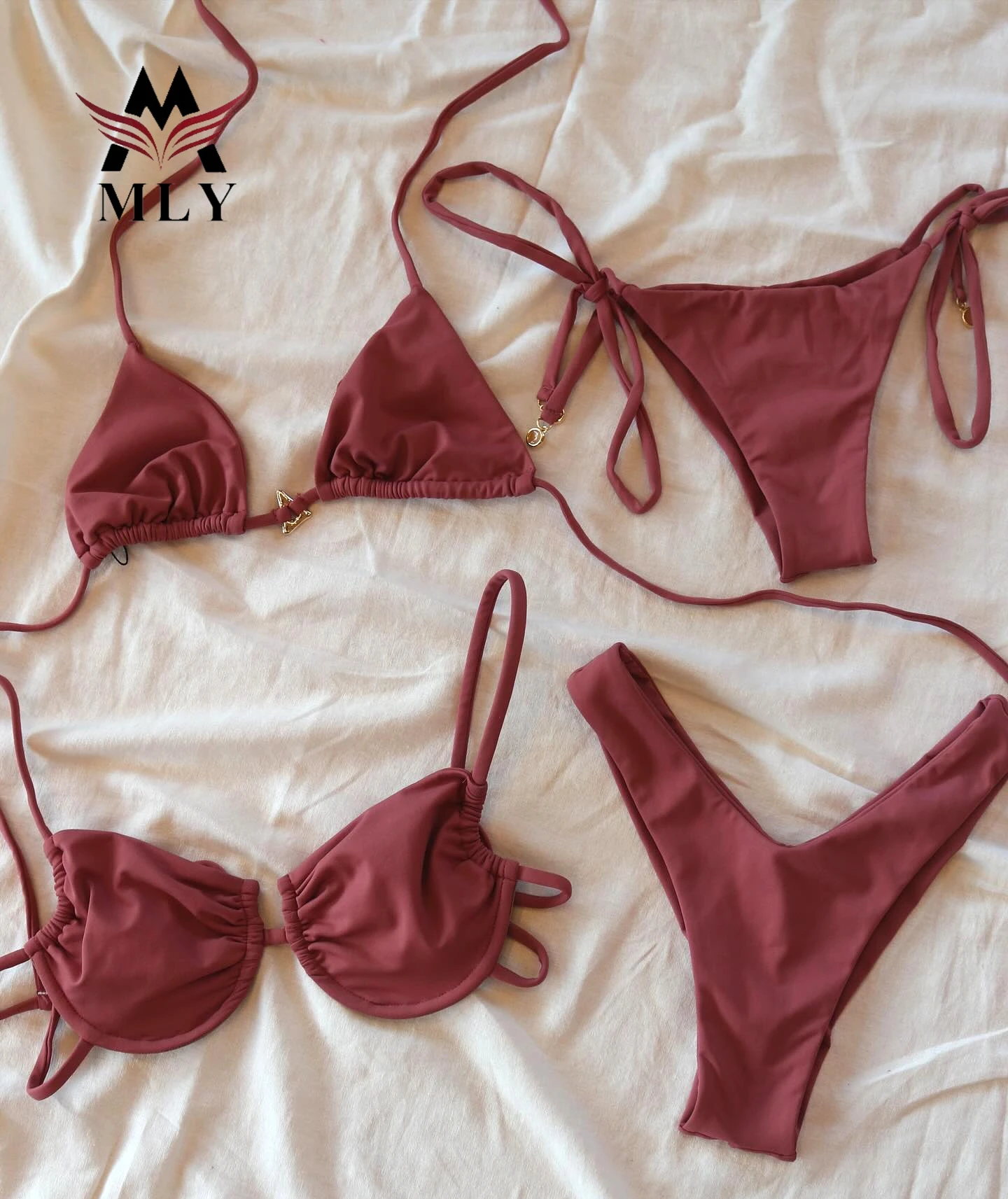 MLY Own Brand Customized Bikini Swimwear Manufacturer High Quality Double Layer Swim Wear Women's String Bikini Suit